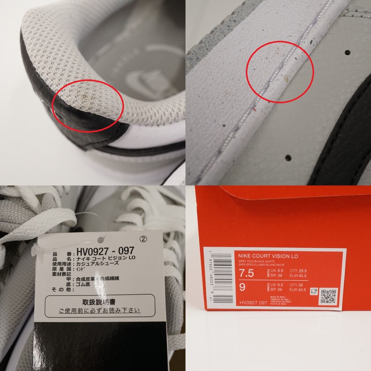 【新品】NIKE ナイキ コート ビジョン LOW メンズシューズ HV0927-097 25.5cm グレー 外箱付 スニーカー X8620