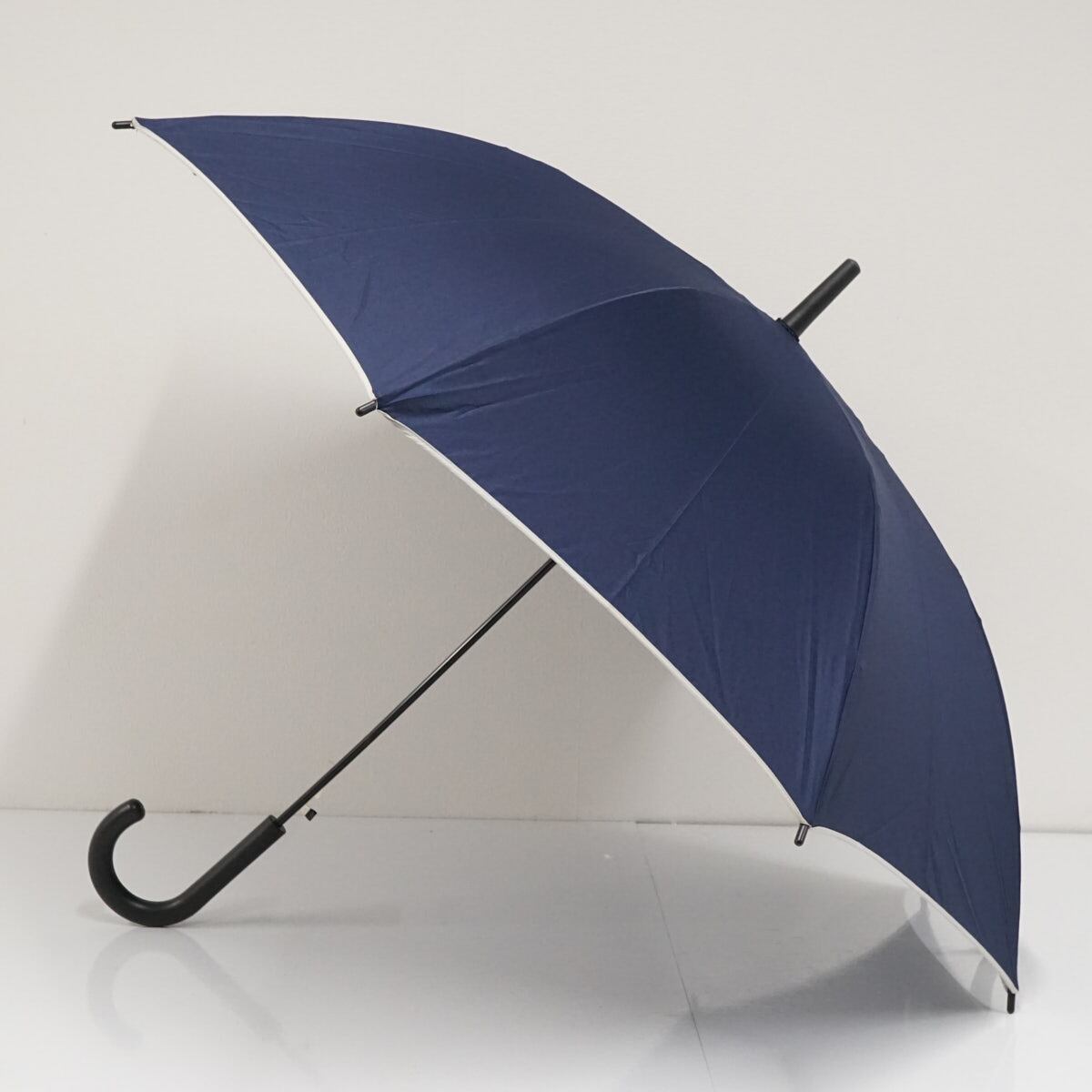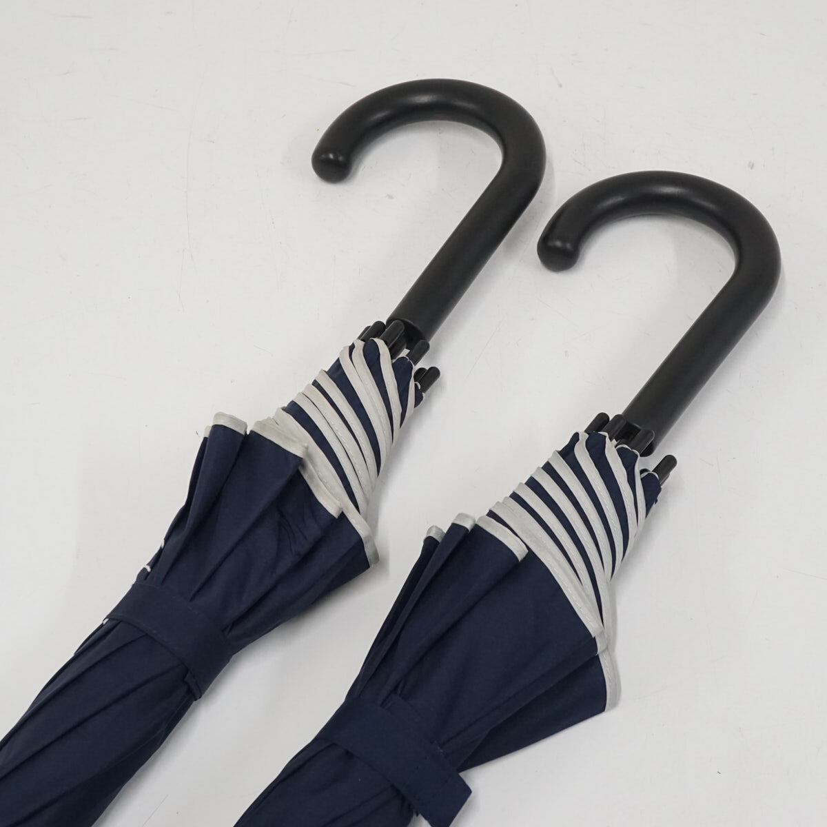 お色はネイビー(縁がホワイトのもの)の2本セットで、側面にワンポイントのシンプルなデザインですので、通学用の傘としてもお使いいただけます。