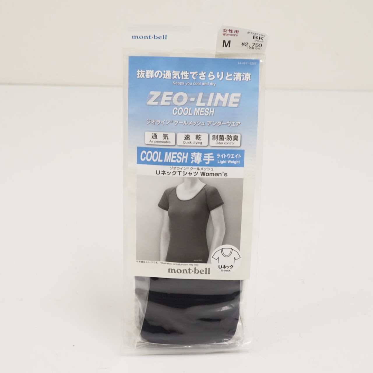 【新品】mont-bell モンベル ジオライン クールメッシュ Uネック 速乾 制菌・防臭 レディース Mサイズ ブラック #110754 X8622