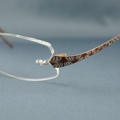 フチなしのツーポイントの個性的なデザインが目を引く、『Flair』の眼鏡です。