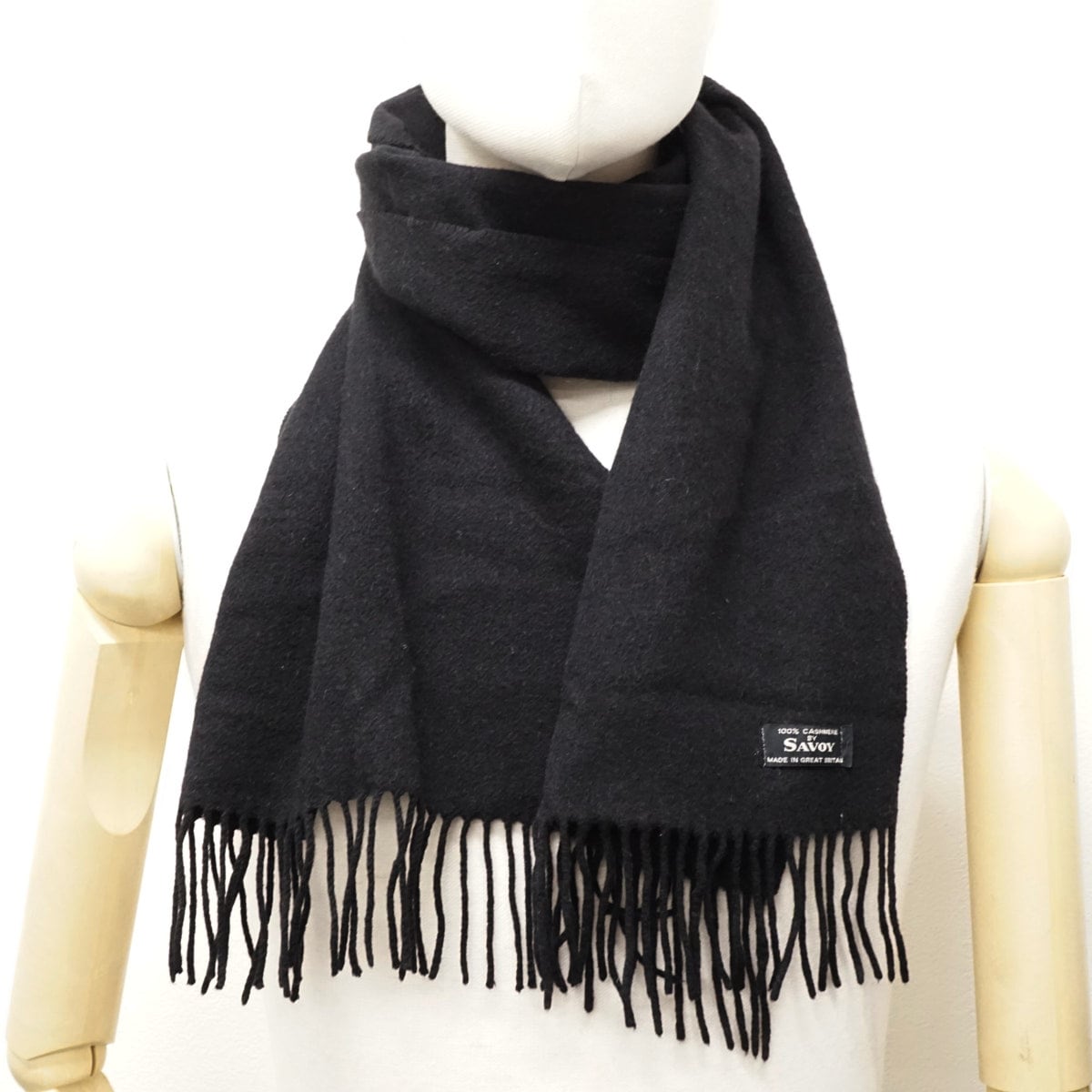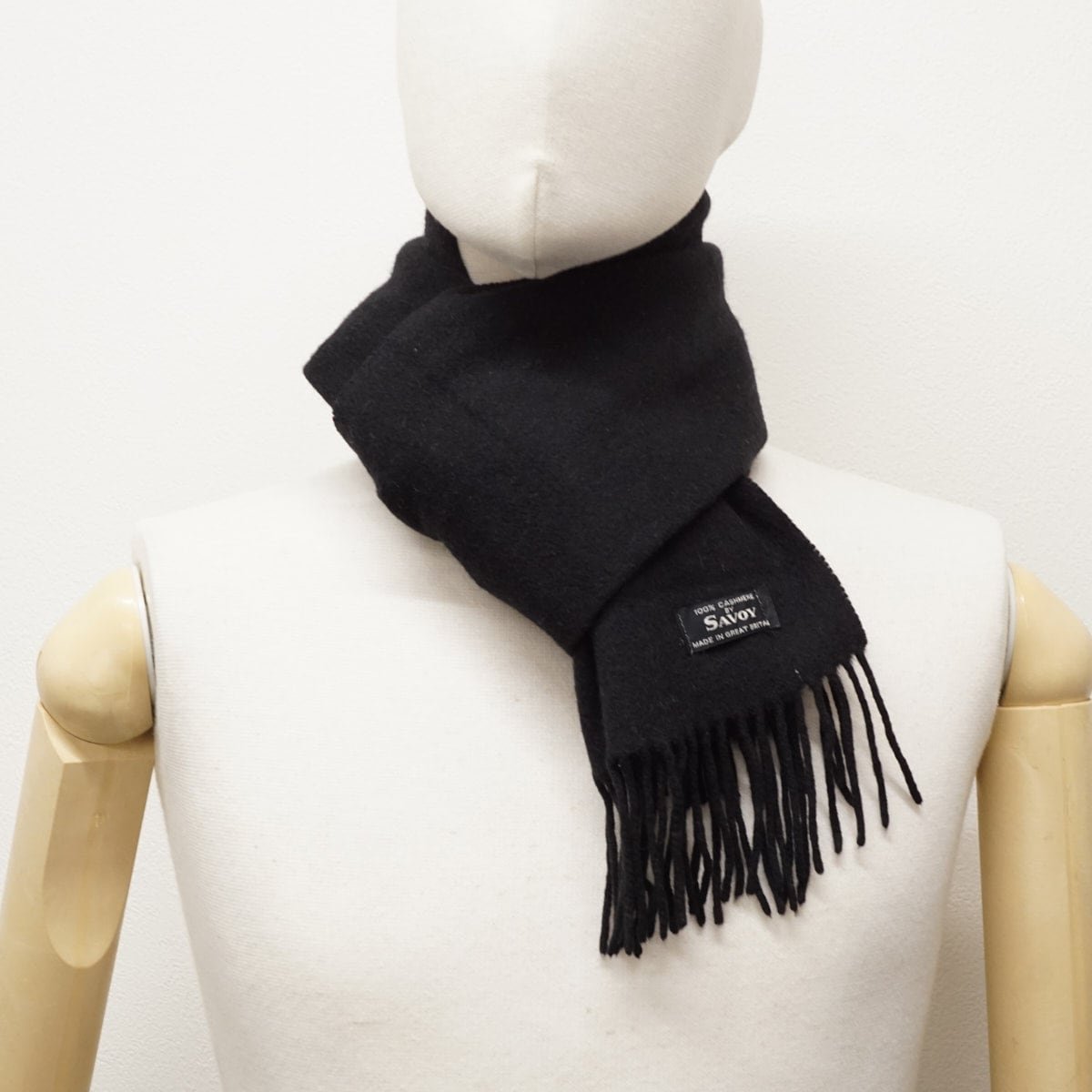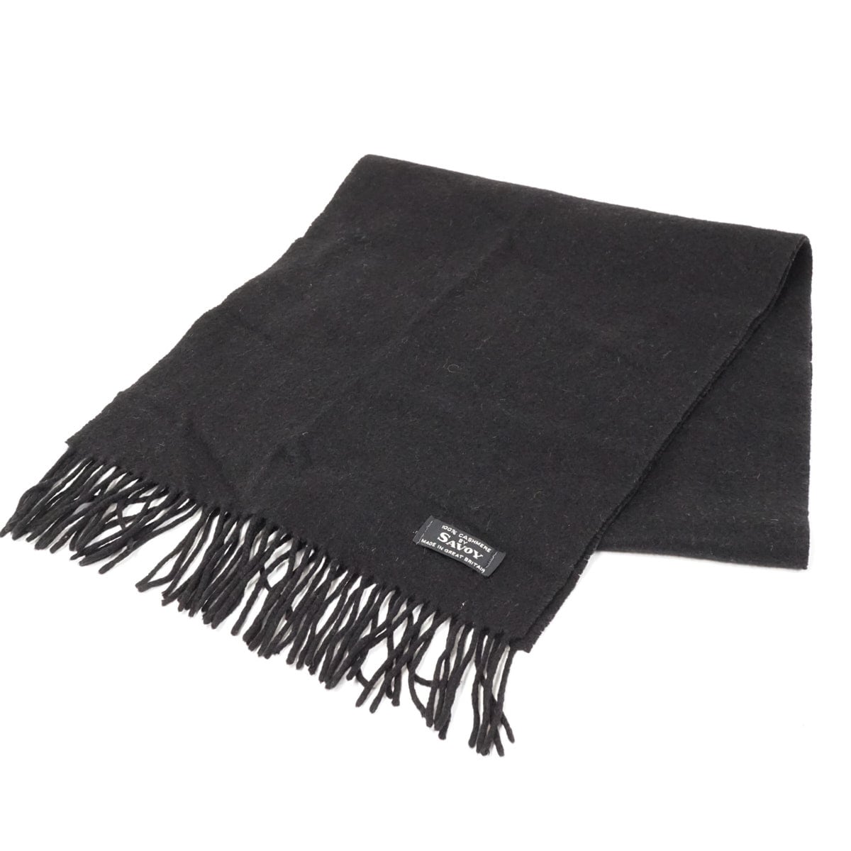 SAVOY サボイ マフラー USED美品 ブラック シンプル カシミヤ100% 英国製 防寒 X8627