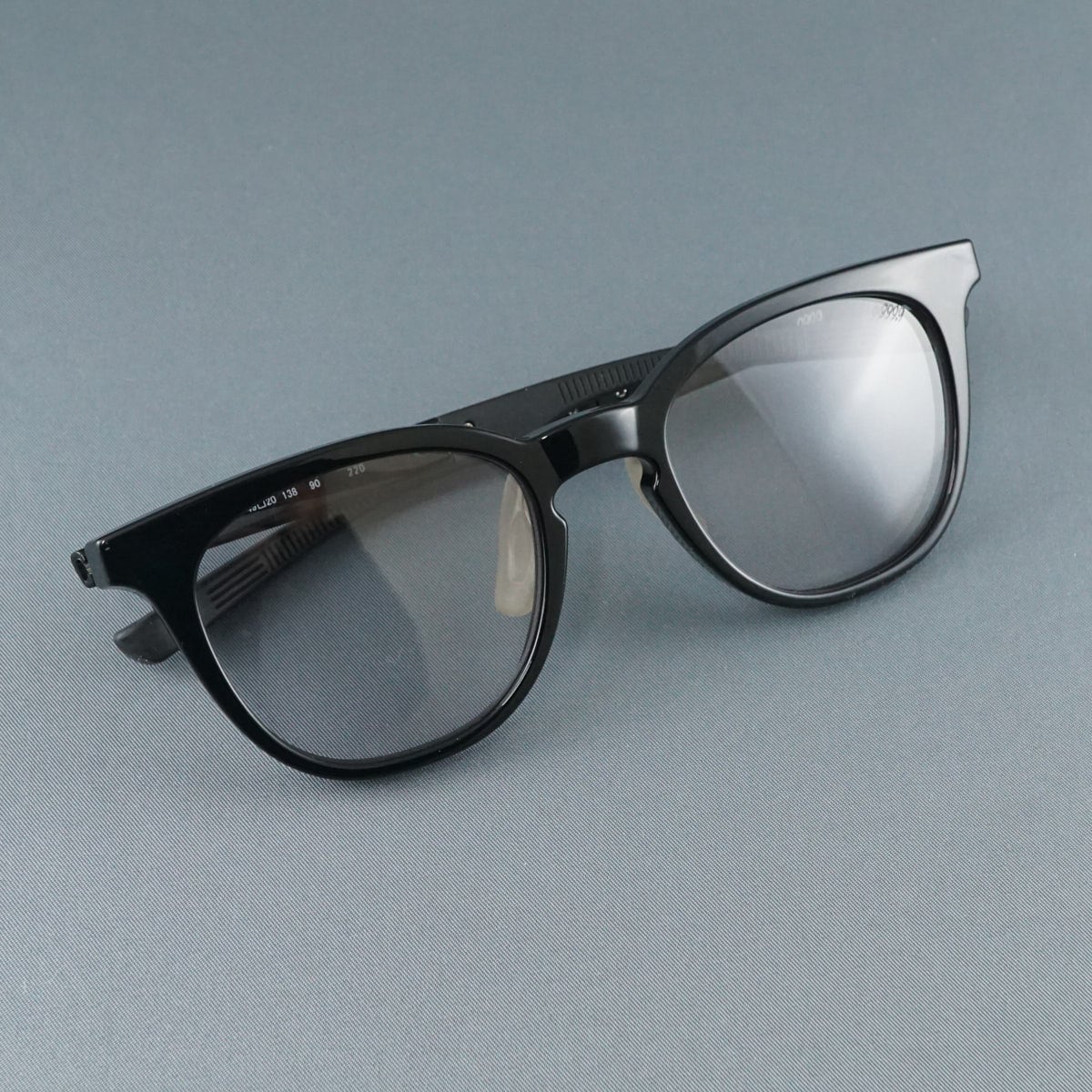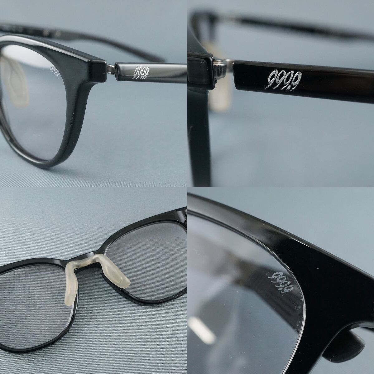 999.9 フォーナインズ 眼鏡 USED美品 SP-24 col.90 ブラック ボストンウェリントン セルフレーム 逆Rヒンジ スポーツ 中古 X8746