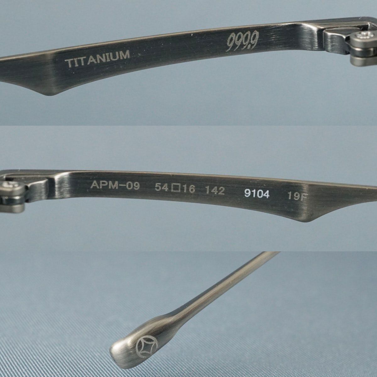 999.9 フォーナインズ 眼鏡 USED美品 APM-09 col.9104 ブラックマット アンティークシルバー チタン 中古 X8747