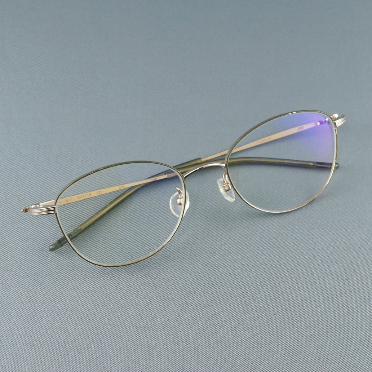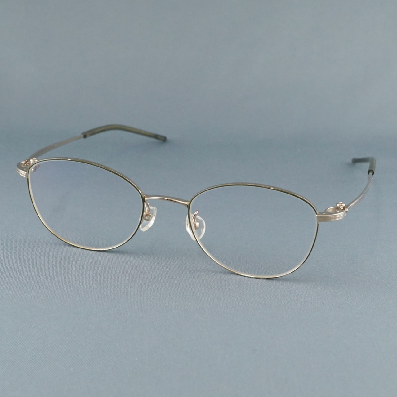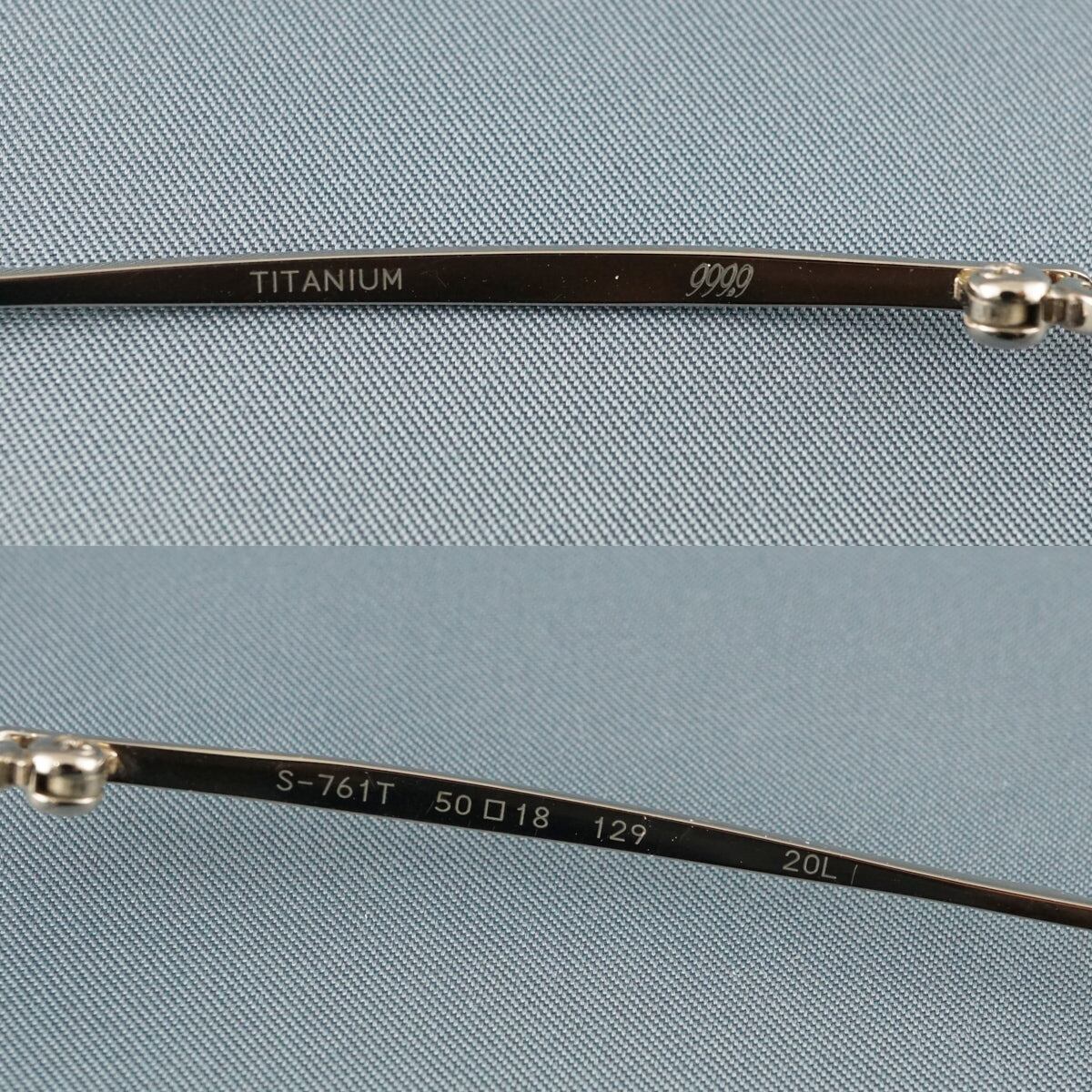 999.9 フォーナインズ 眼鏡 USED美品 S-761T col.1076 ホワイトゴールド カーキ チタン 中古 X8748