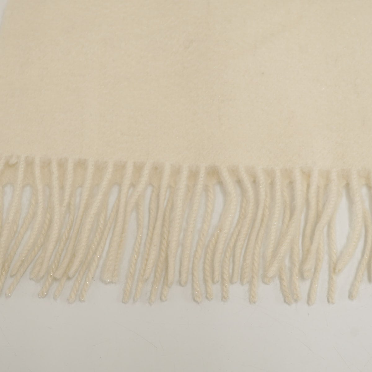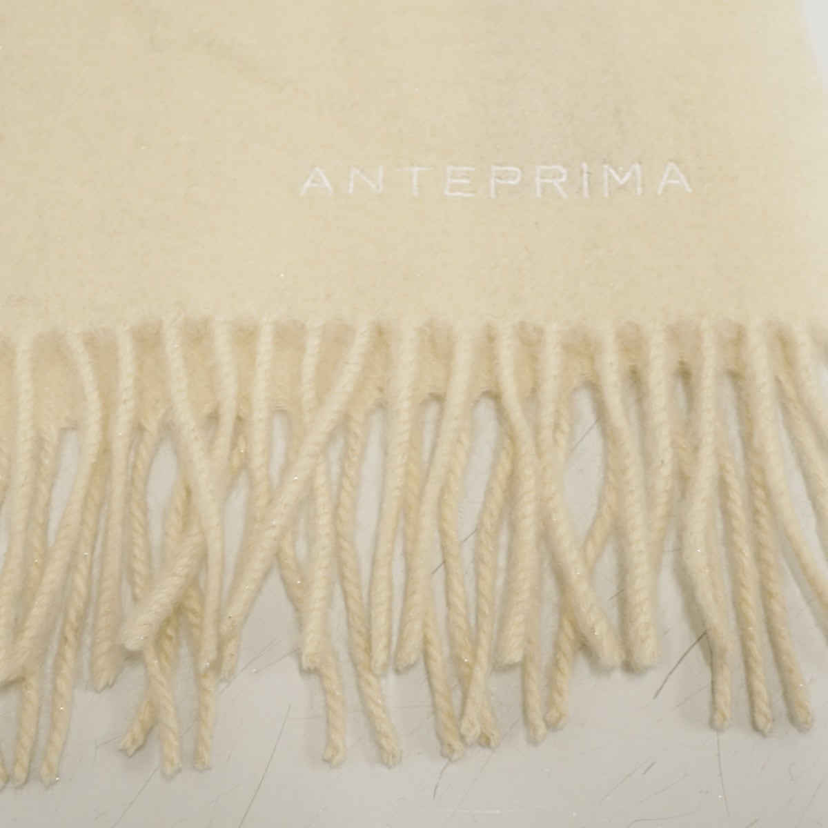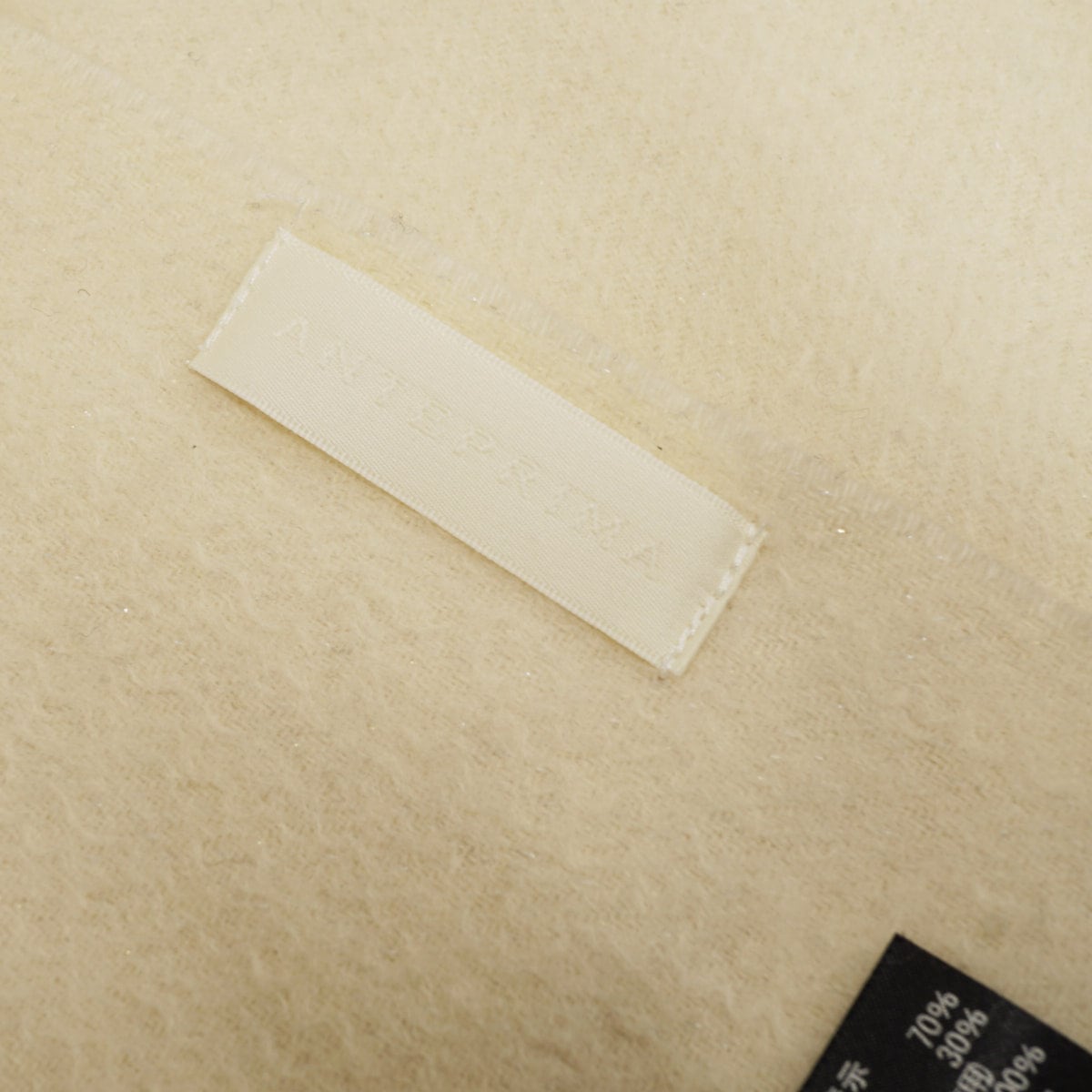 ANTEPRIMA アンテプリマ マフラー USED品 アイボリー ロゴ刺繍 シンプル シルバーラメ入り 毛 カシミヤ X8711