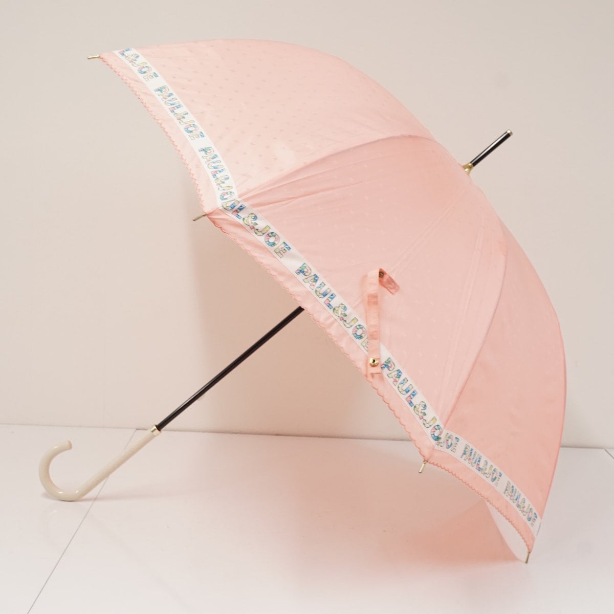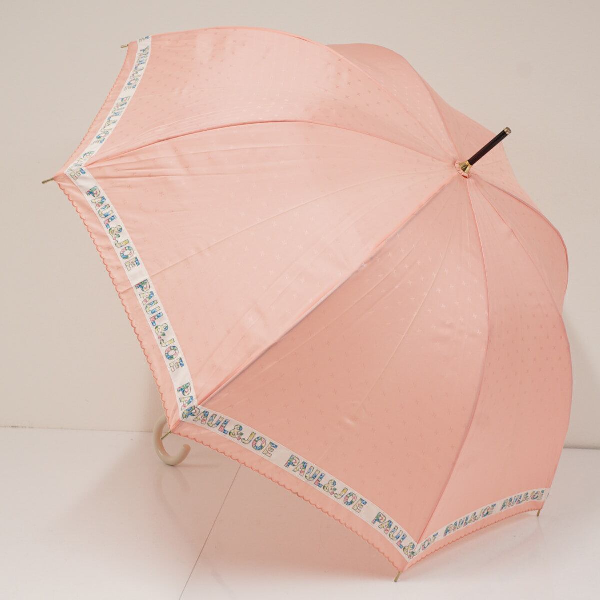 傘 PAUL & JOE ACCESSOIRES ポールアンドジョーアクセソワ USED品 ロゴリボン ピーチ 60cm A3379