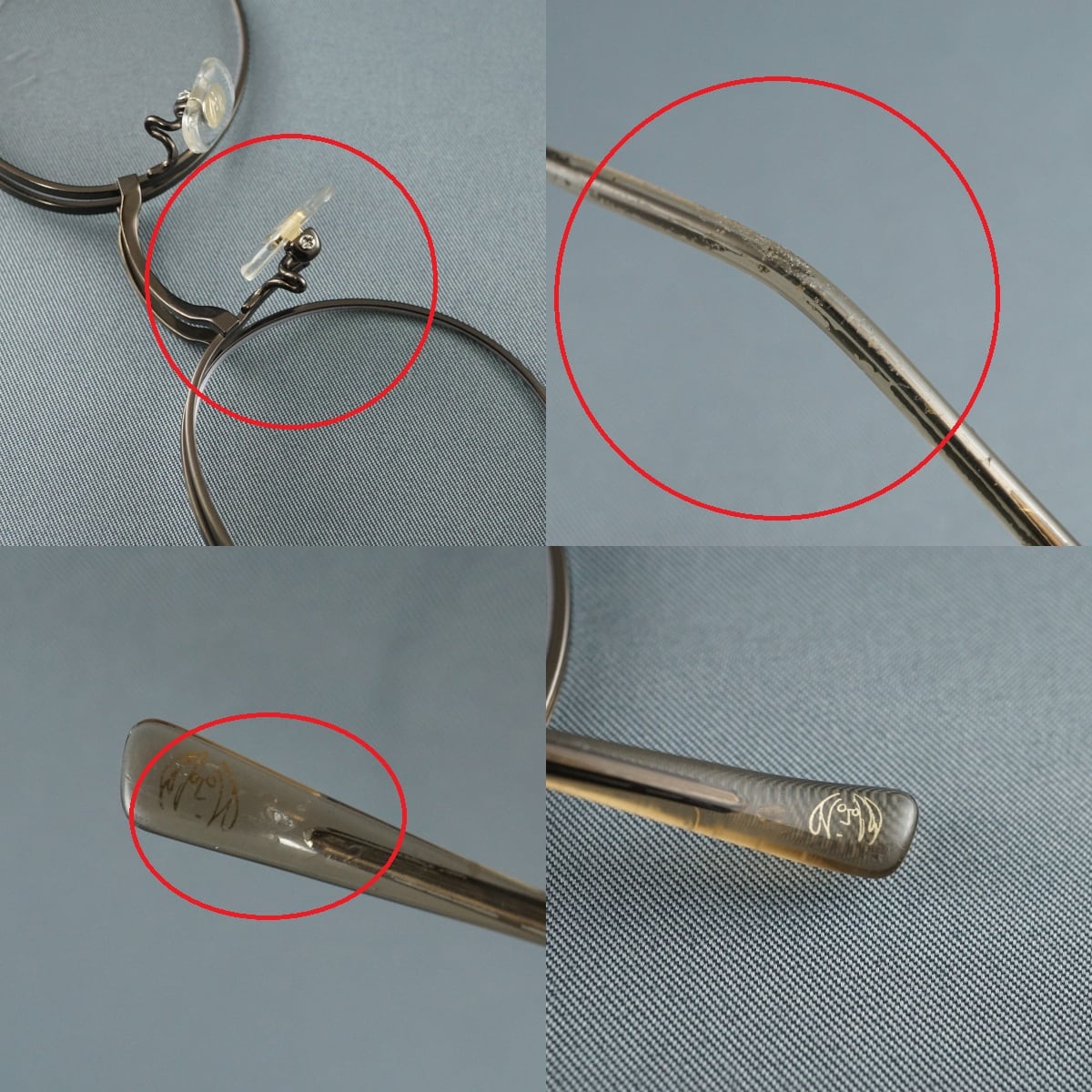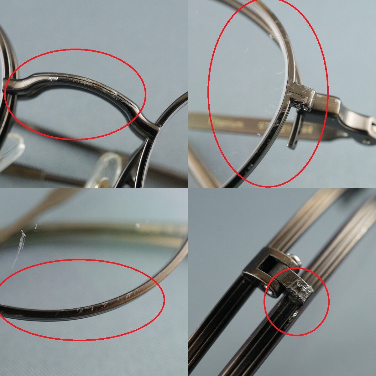 ※モダン、リム、テンプル等にスレ、薄汚れ、キズ、削れなどがあります。(一部を画像にてご確認ください。)