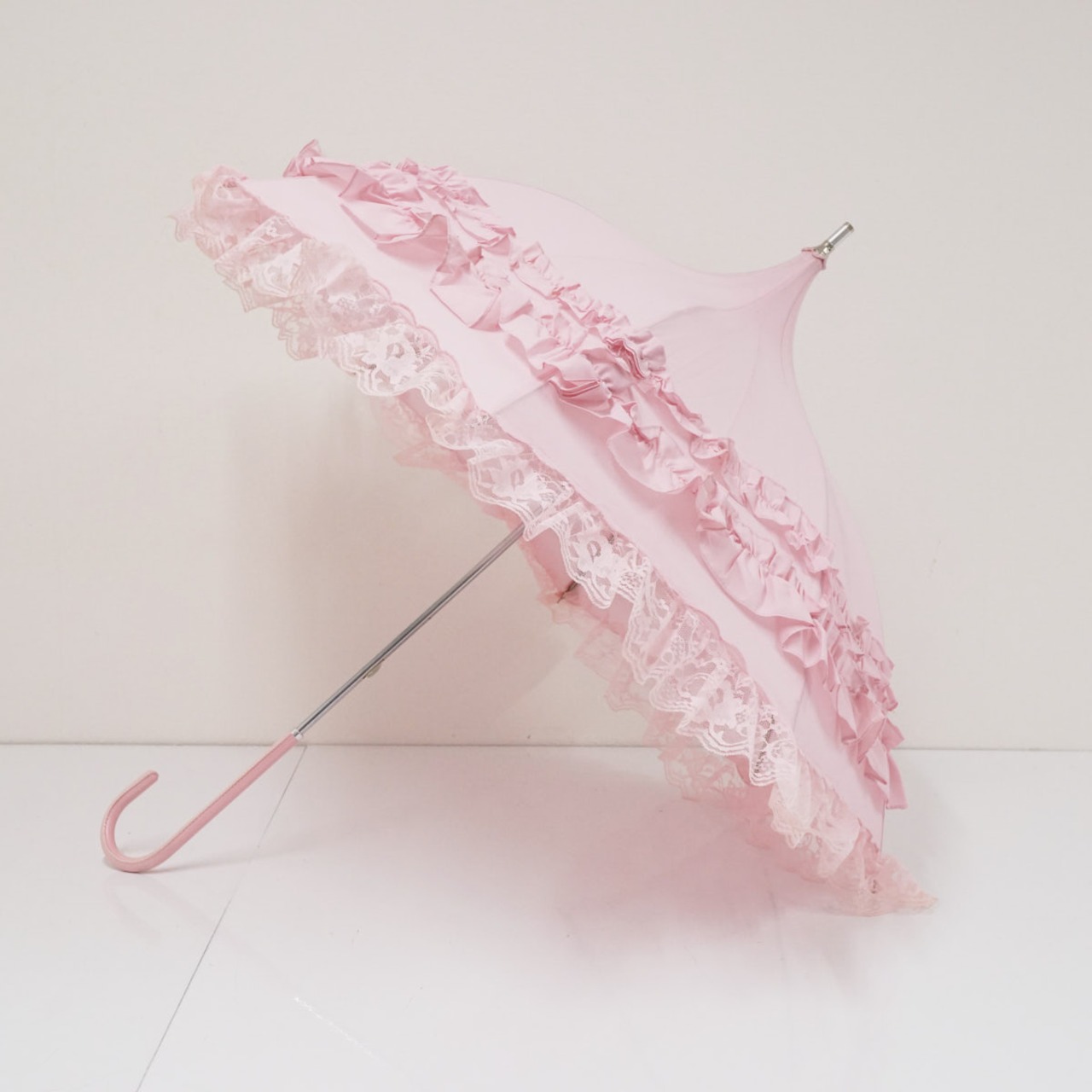 傘 BABY, THE STARS SHINE BRIGHT ベイビーザスターズシャインブライト USED品 パゴダ ボリュームフリル ピンク 晴雨兼用 47cm A3389