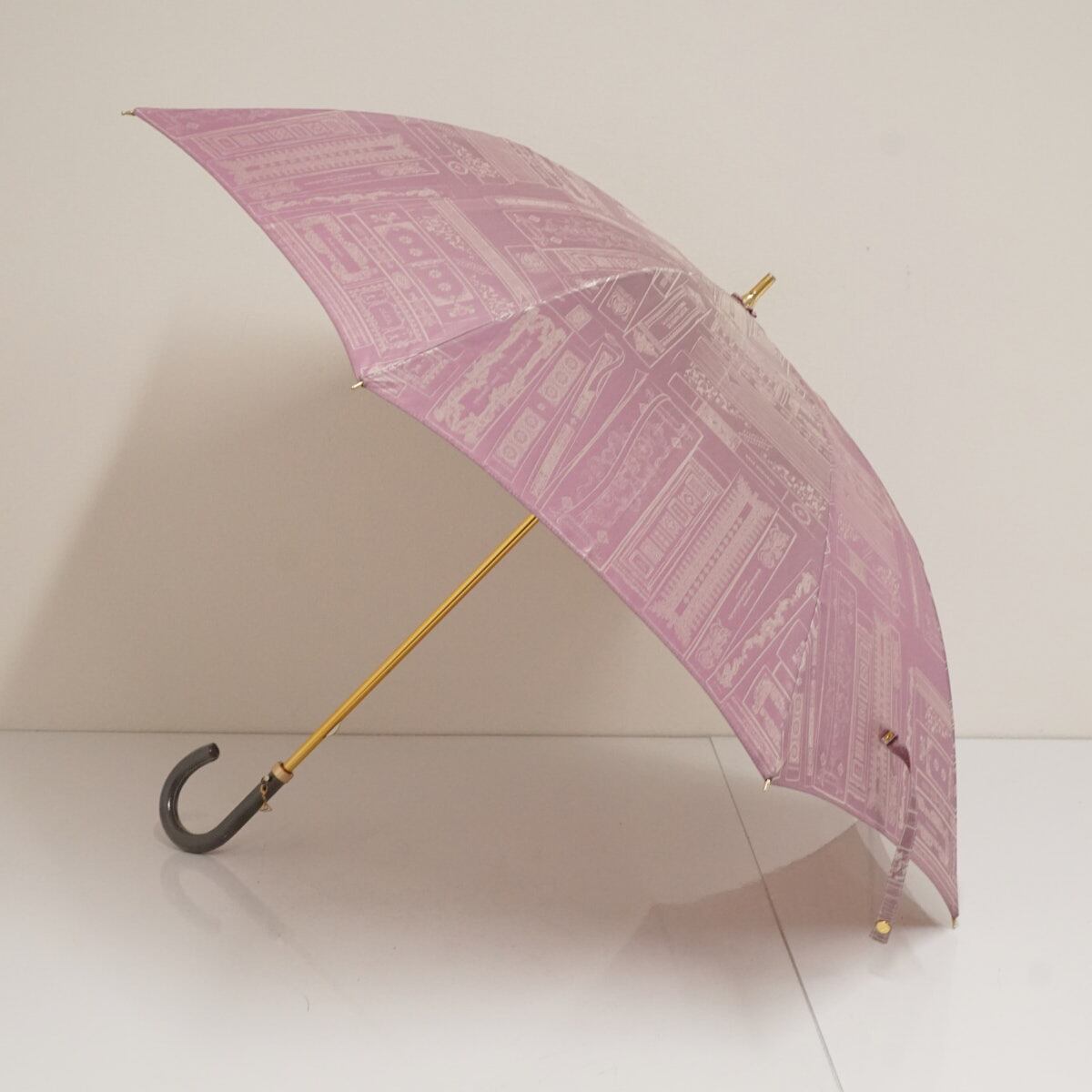 傘 HANWAY ハンウェイ 高級傘 USED品 ジャガード Bookworm 本棚 書庫 クラシカル カーボン骨 軽量 ブランド 57cm S3388