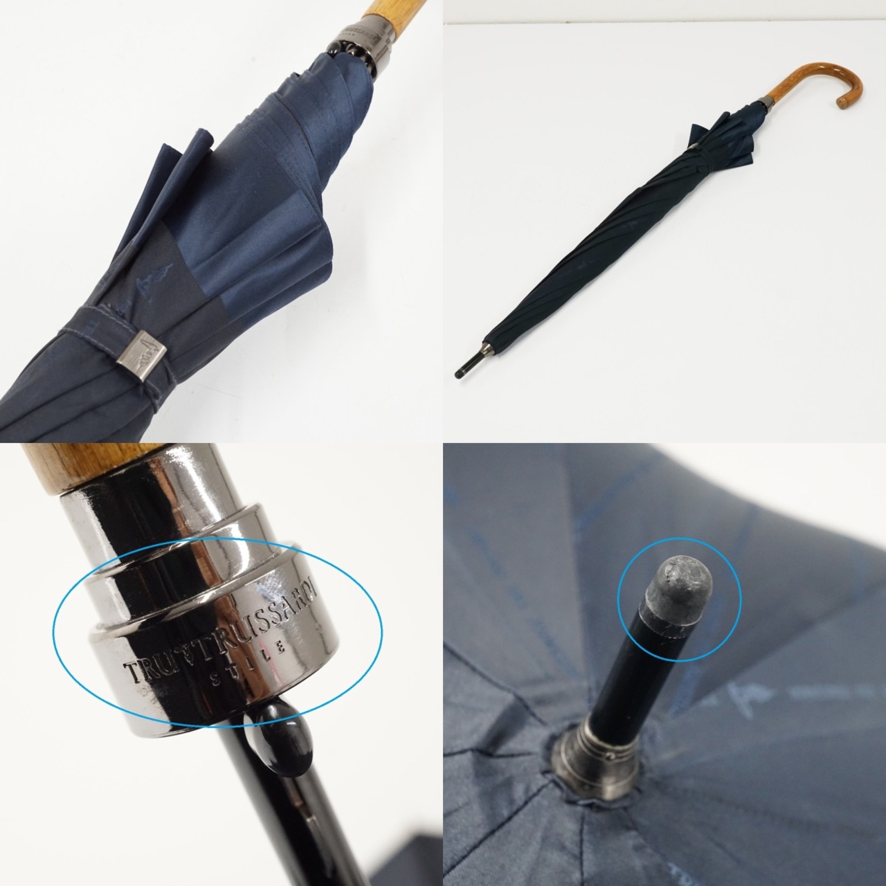 耐風傘 TRU TRUSSARDI STILE トゥルー トラサルディ スティーレ USED品 ブランドロゴ ネイビー ジャンプ 紳士傘 65cm A3396