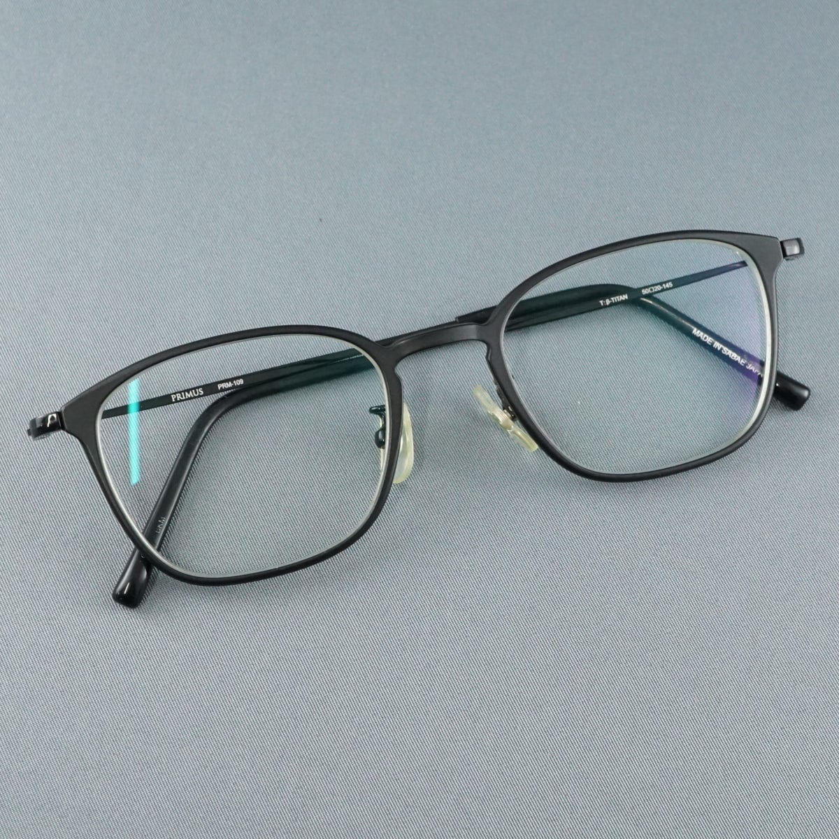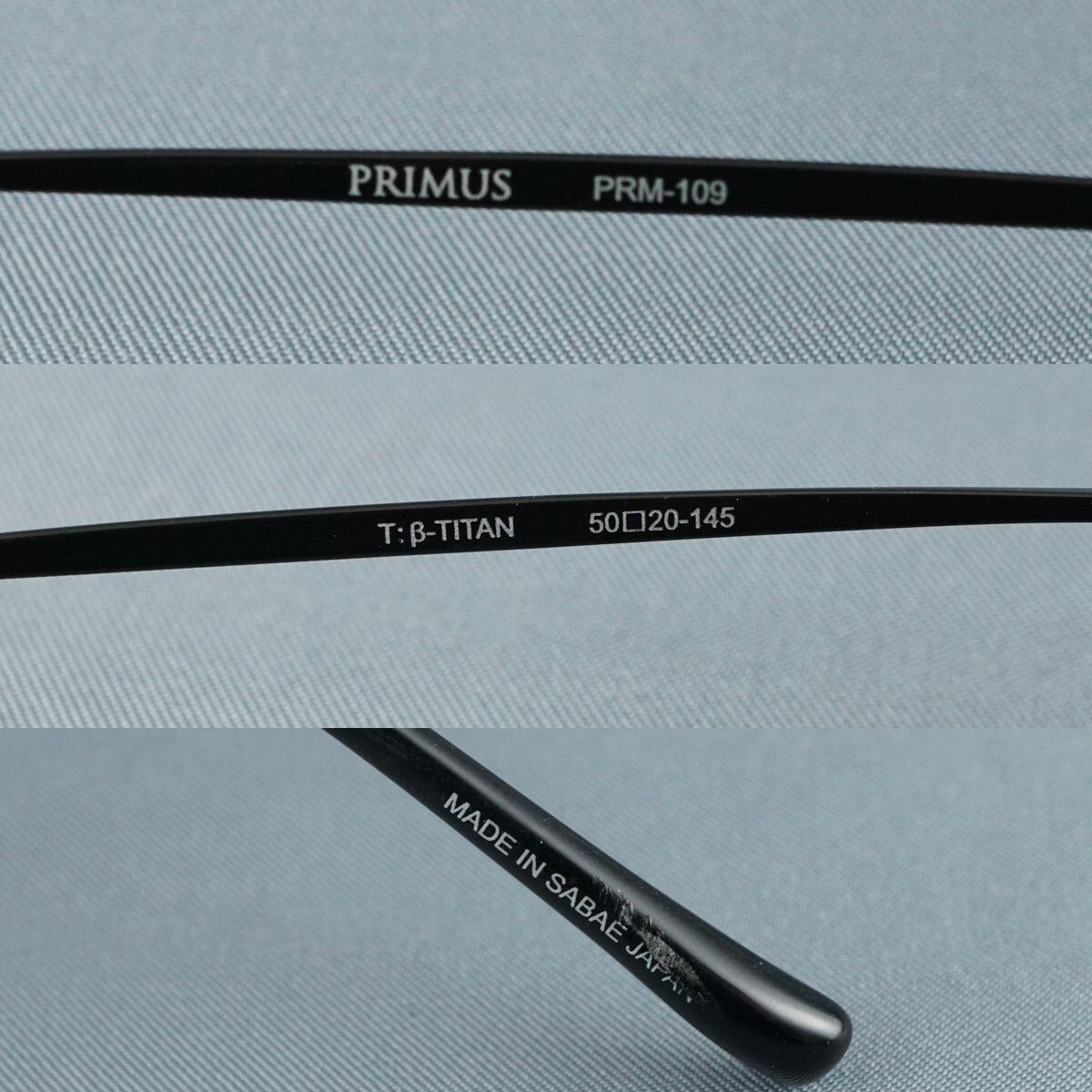 PRIMUS 眼鏡 USED美品 PRM-109 プリムス 鯖江製 チタン ブラック 黒縁 ウェリントン ユニセックス 中古 アイウェア X8856
