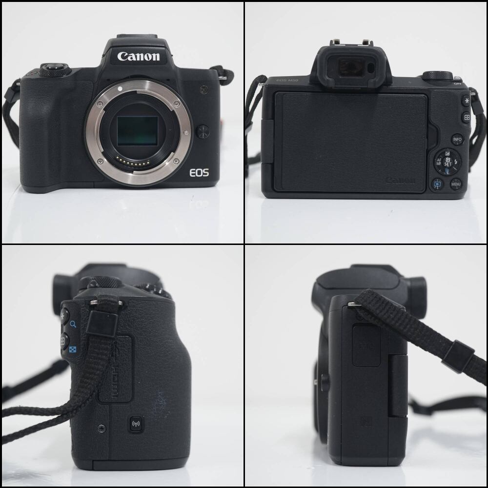 Canon EOS M50 + EF-M15-45 IS STM ミラーレス一眼カメラ USED美品 キヤノン レンズキット ブラック APS-Cセンサー 完動品 CP2344
