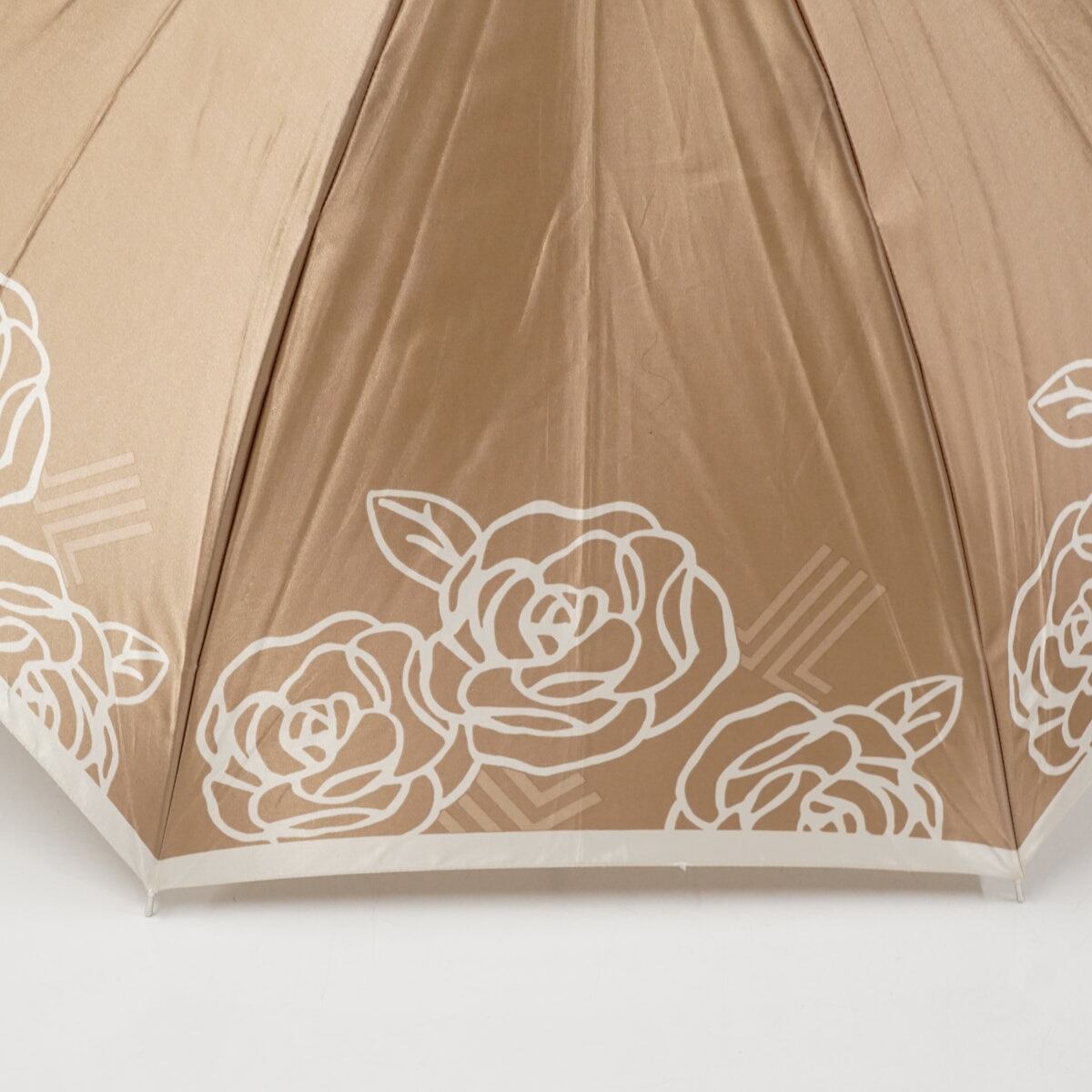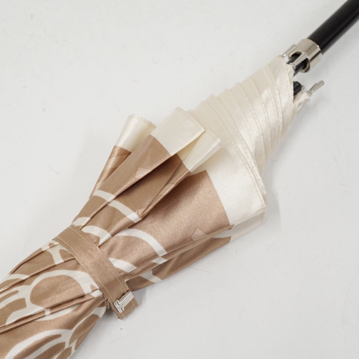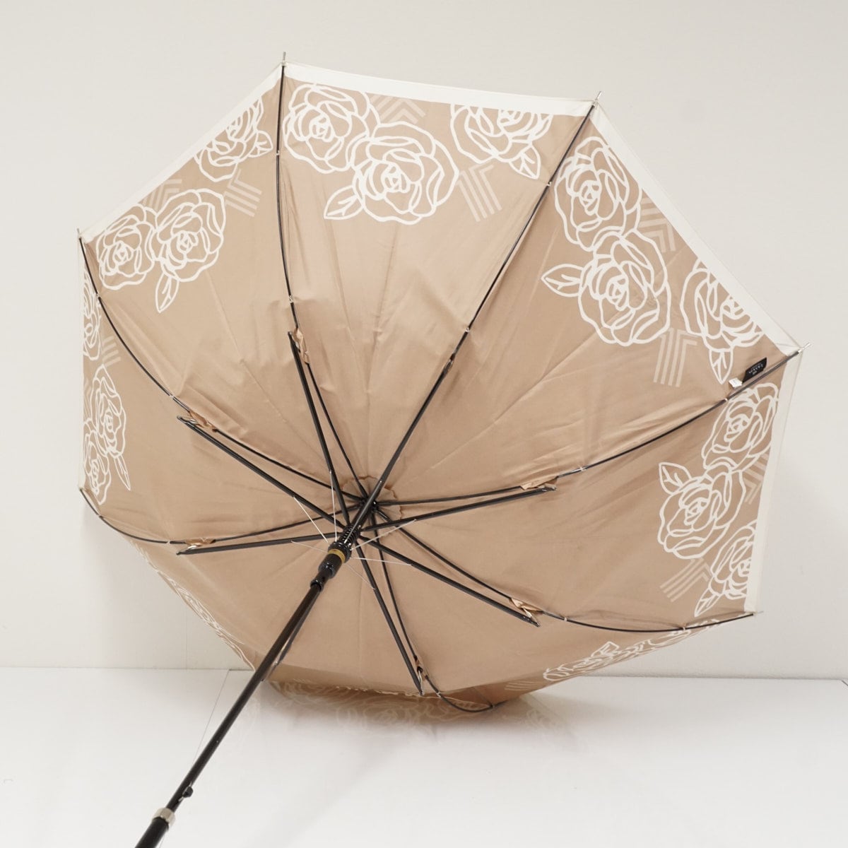 耐風傘 LANVIN COLLECTION ランバンコレクション USED美品 フラワー ブランド ロゴ 華やか ジャンプ ベージュ A3399