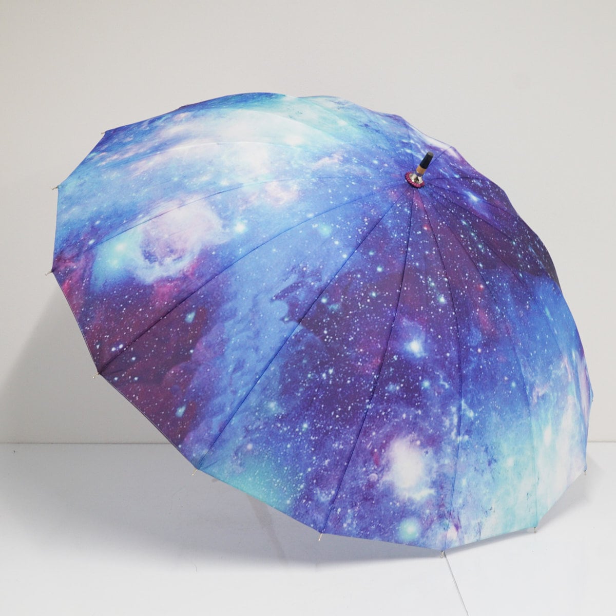 神秘的な宇宙が傘の全面に広がる16本傘です。