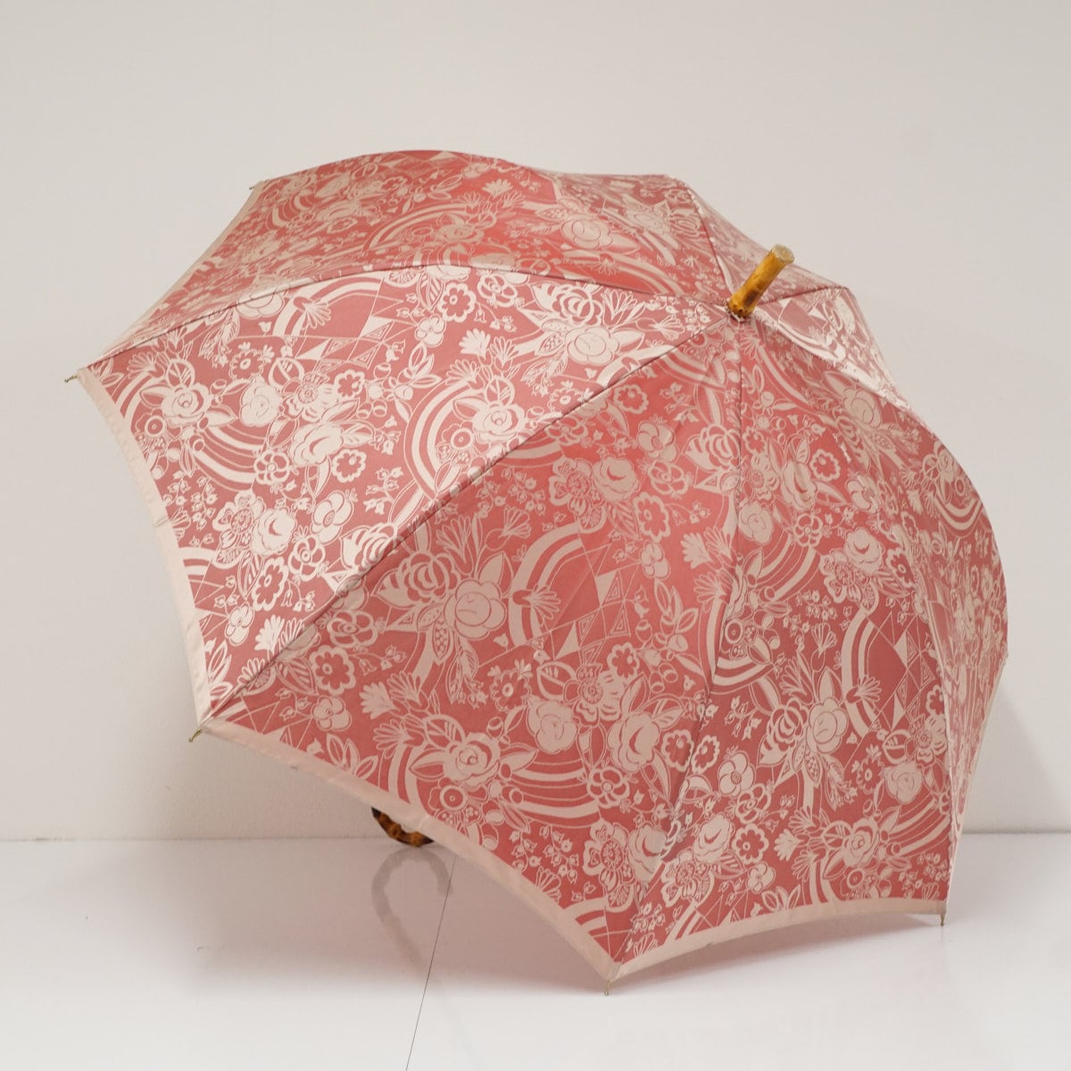 傘 槇田商店 USED品 ジャガード kirie 更紗 高級 ジャンプ 槙田商店 ピンク系 60cm S3401
