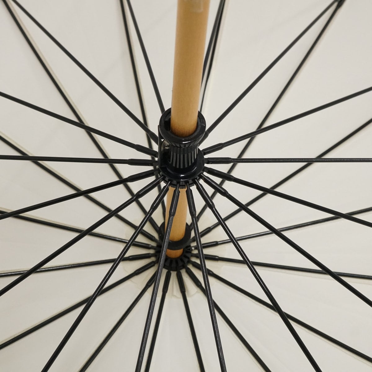 軸は手に馴染むよう天然木(エンジュ)を使用。持ち手の馴染みやすさだけでなくく、手開き傘のぐっと持ち上げた時もなめらかに開きます。