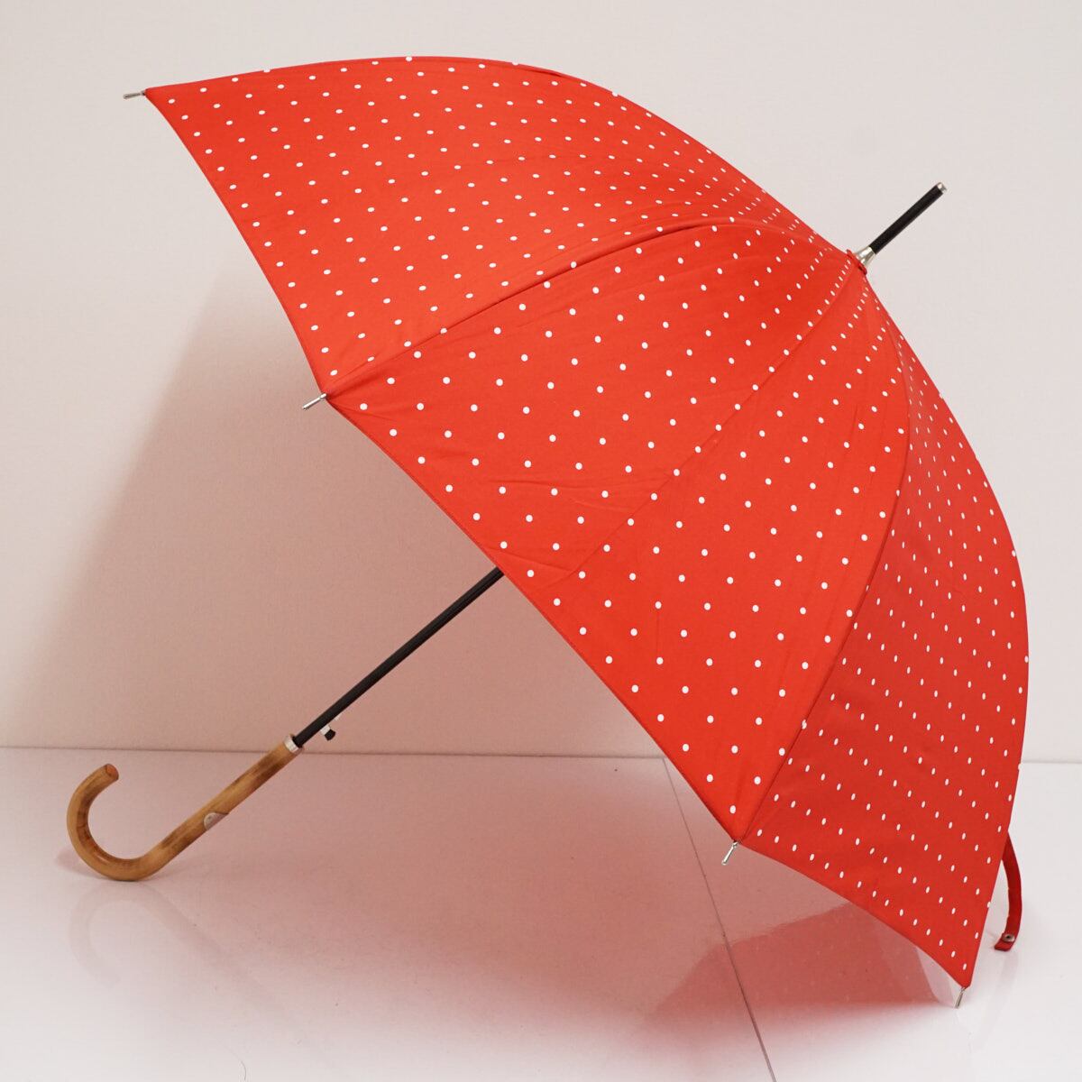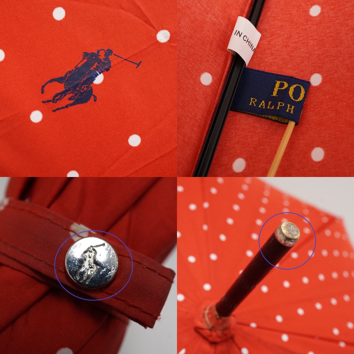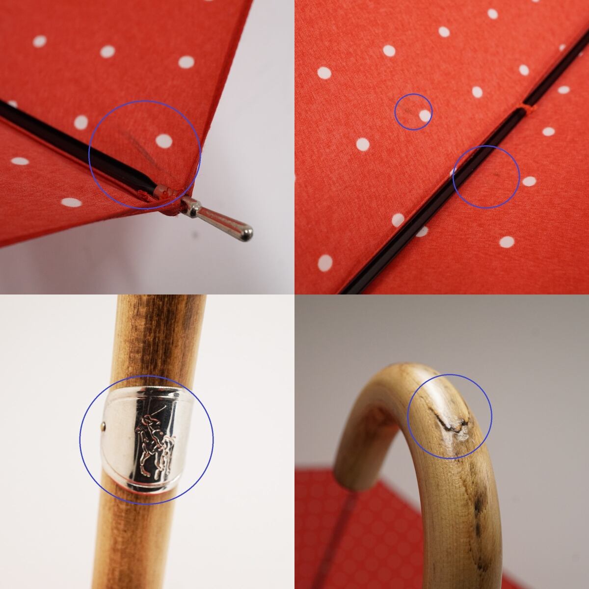 傘 Polo Ralph Lauren ラルフローレン 高級傘 USED品 ドット レッド ジャンプ 60cm A3406