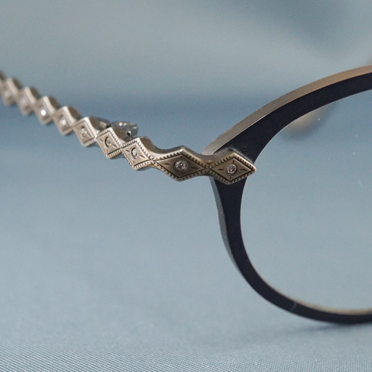 板抜きされたチタンリムとブリッジパーツを繋げることで、立体感が生まれるフレームです。