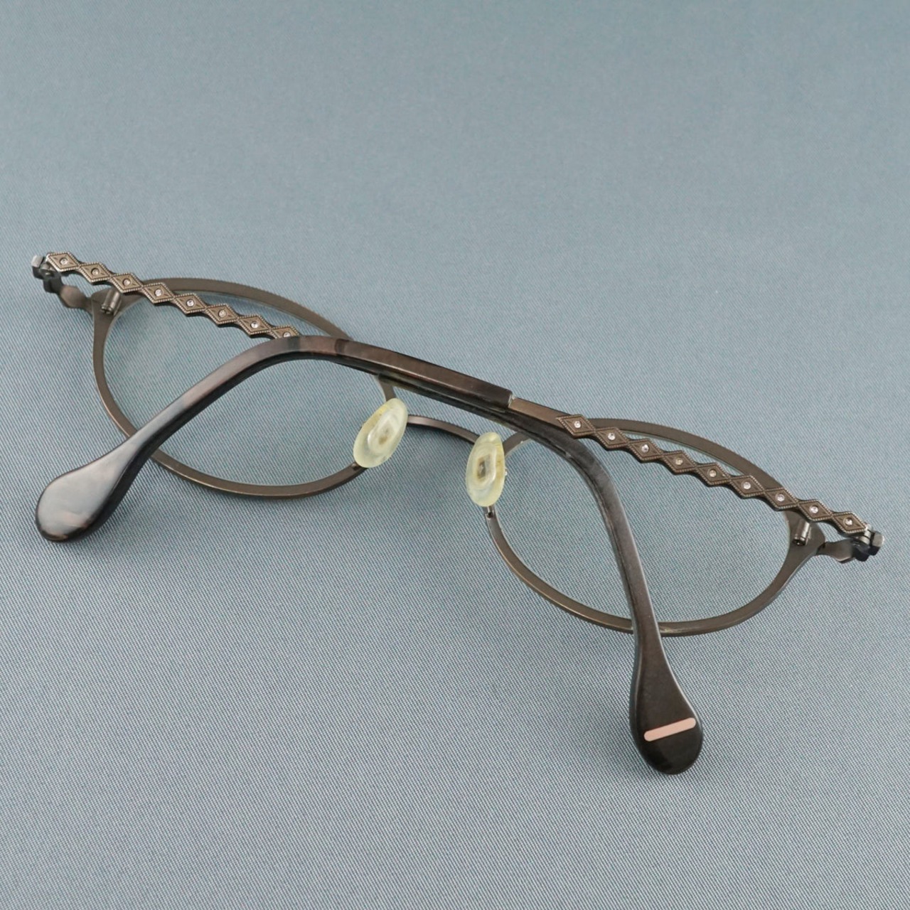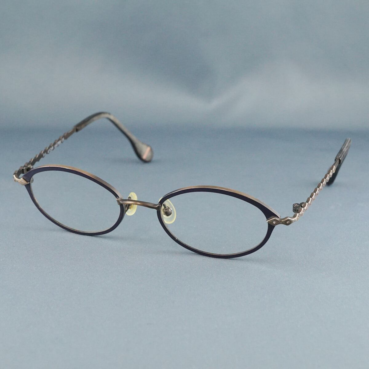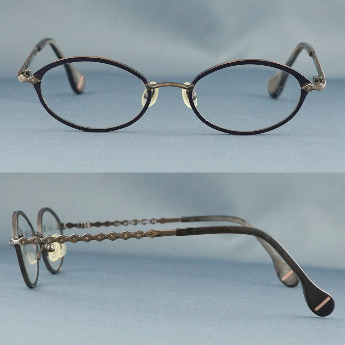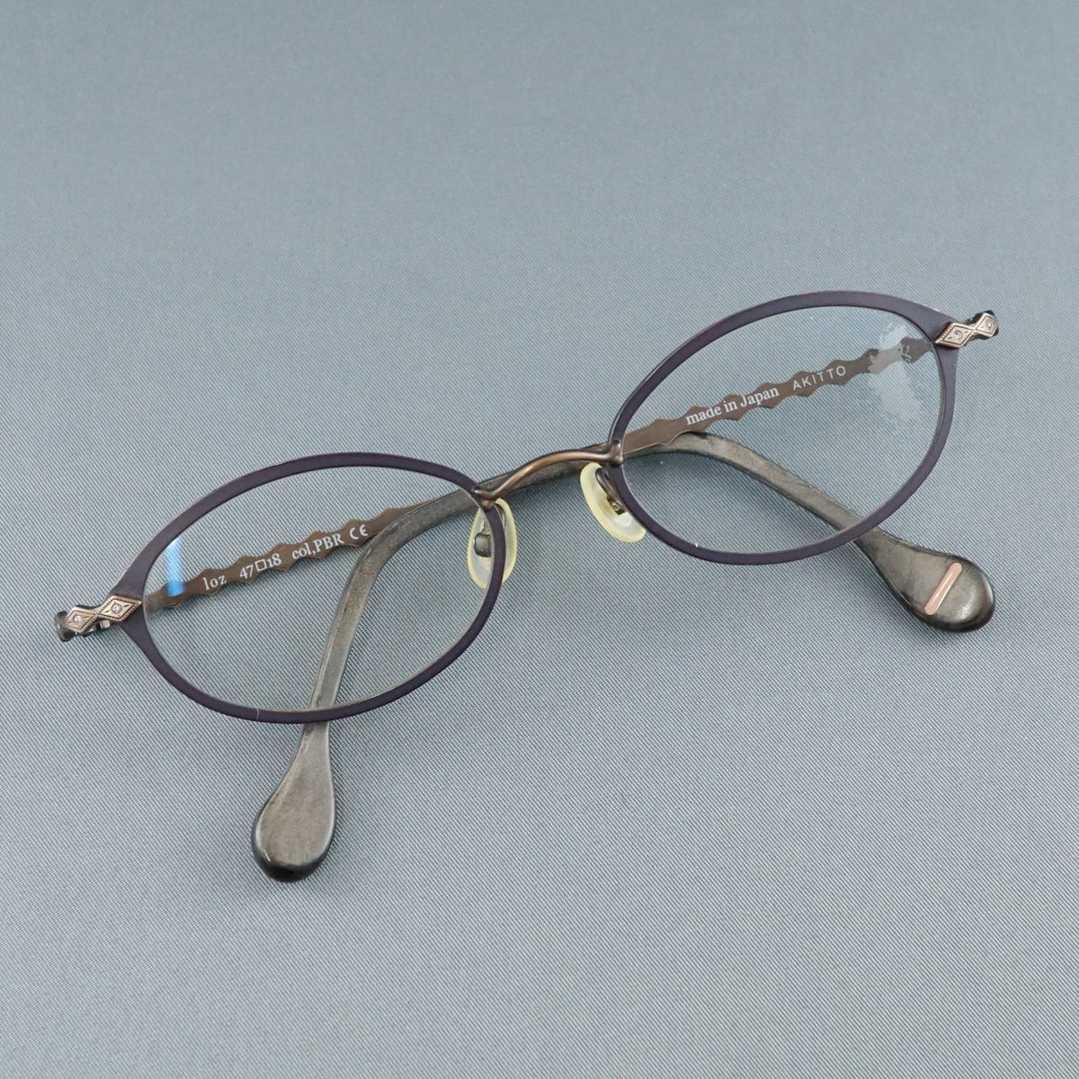 眼鏡 AKITTO loz USED品 アキット チタン スワロフスキー レディース オーバル 日本製 アイウェア 中古 X8911