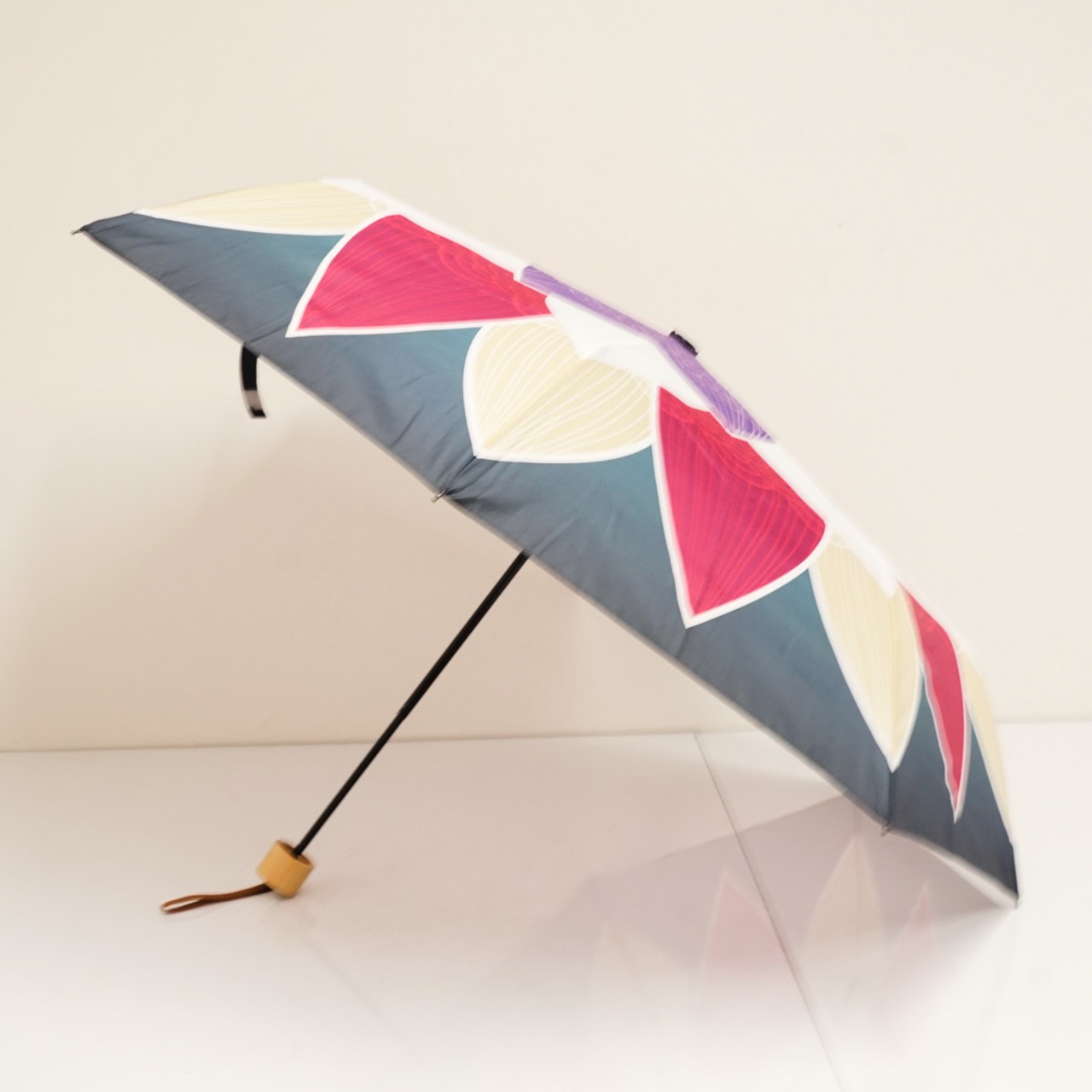 清らかさの象徴ともされる蓮の花を傘布全面にシンプルかつ大胆に描かれたデザインです。