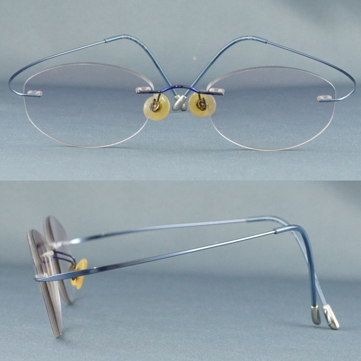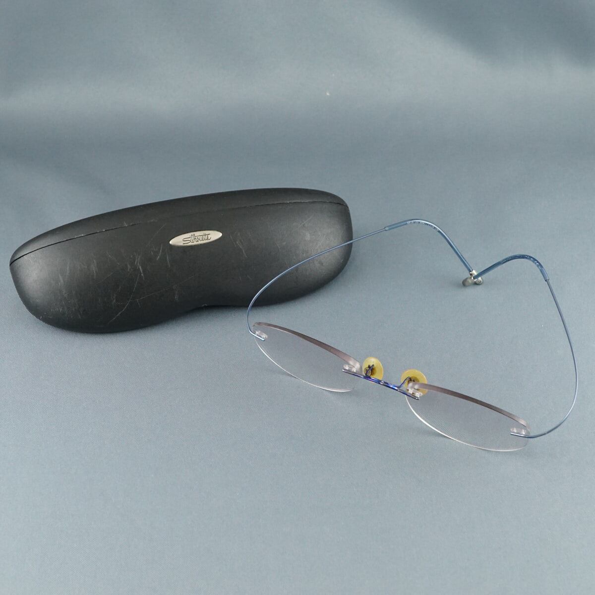 眼鏡 Silhouette USED品 シルエット リムレス ツーポイント ブルー 軽量 ケース付き 中古 アイウェア X8914
