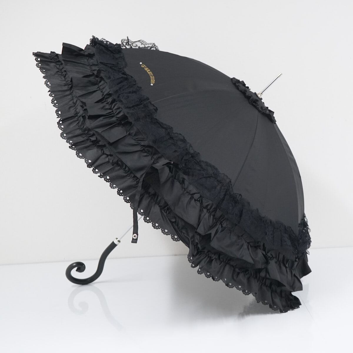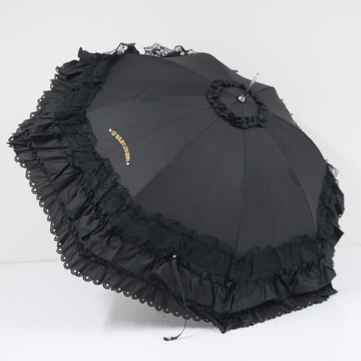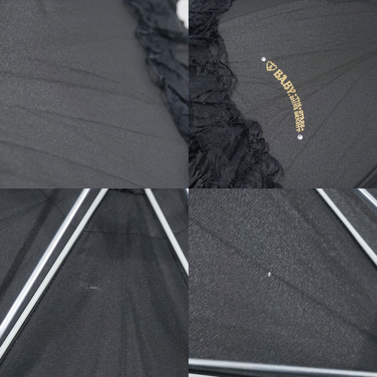 傘 BABY, THE STARS SHINE BRIGHT ベイビーザスターズシャインブライト BABY Rococo アンブレラ USED品 フリル 黒 晴雨兼用 55cm S3422