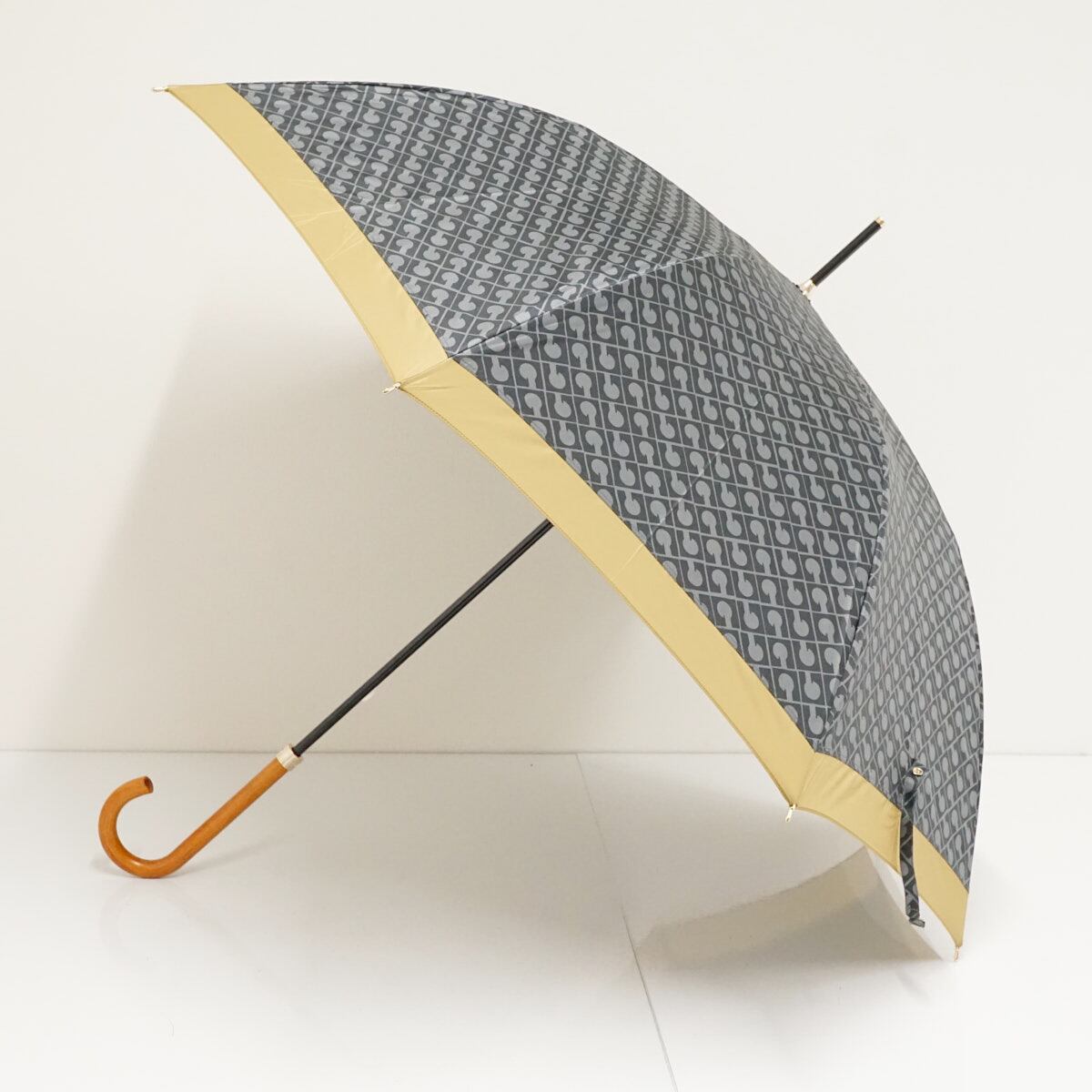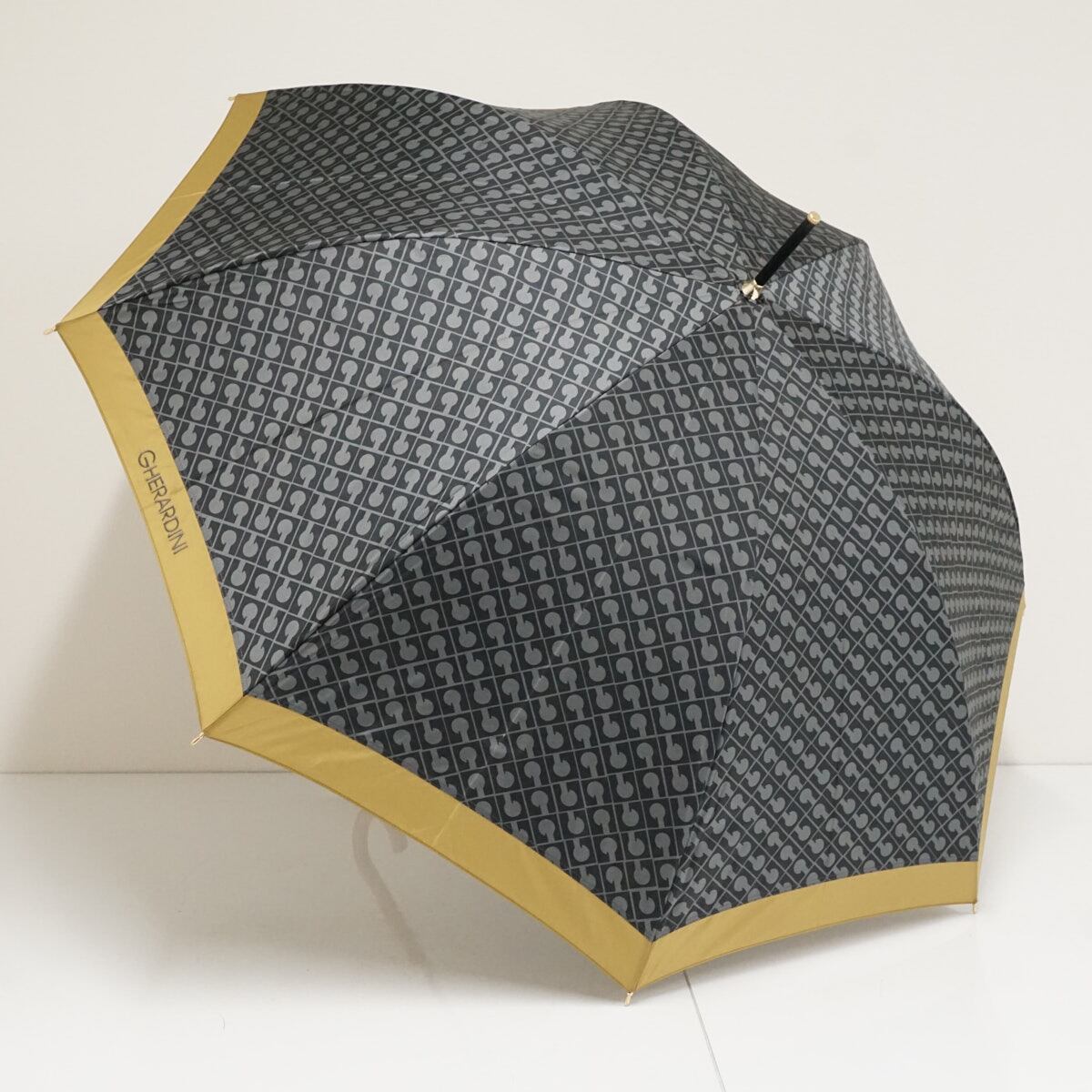 傘 GHERARDINI ゲラルディーニ USED美品 モノグラム ブラック 日本製 木製手元 グラス骨 60cm A3413