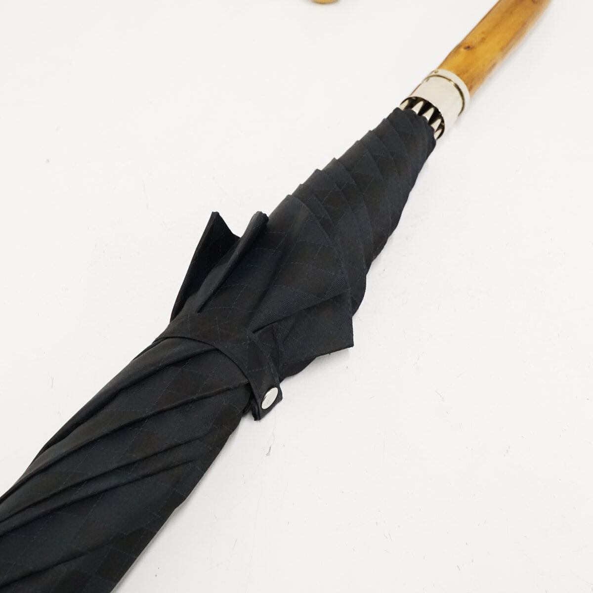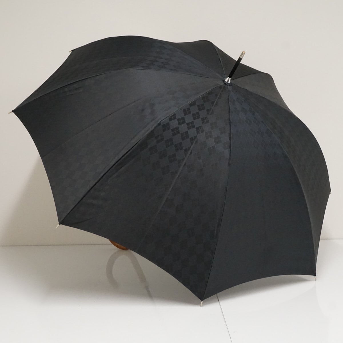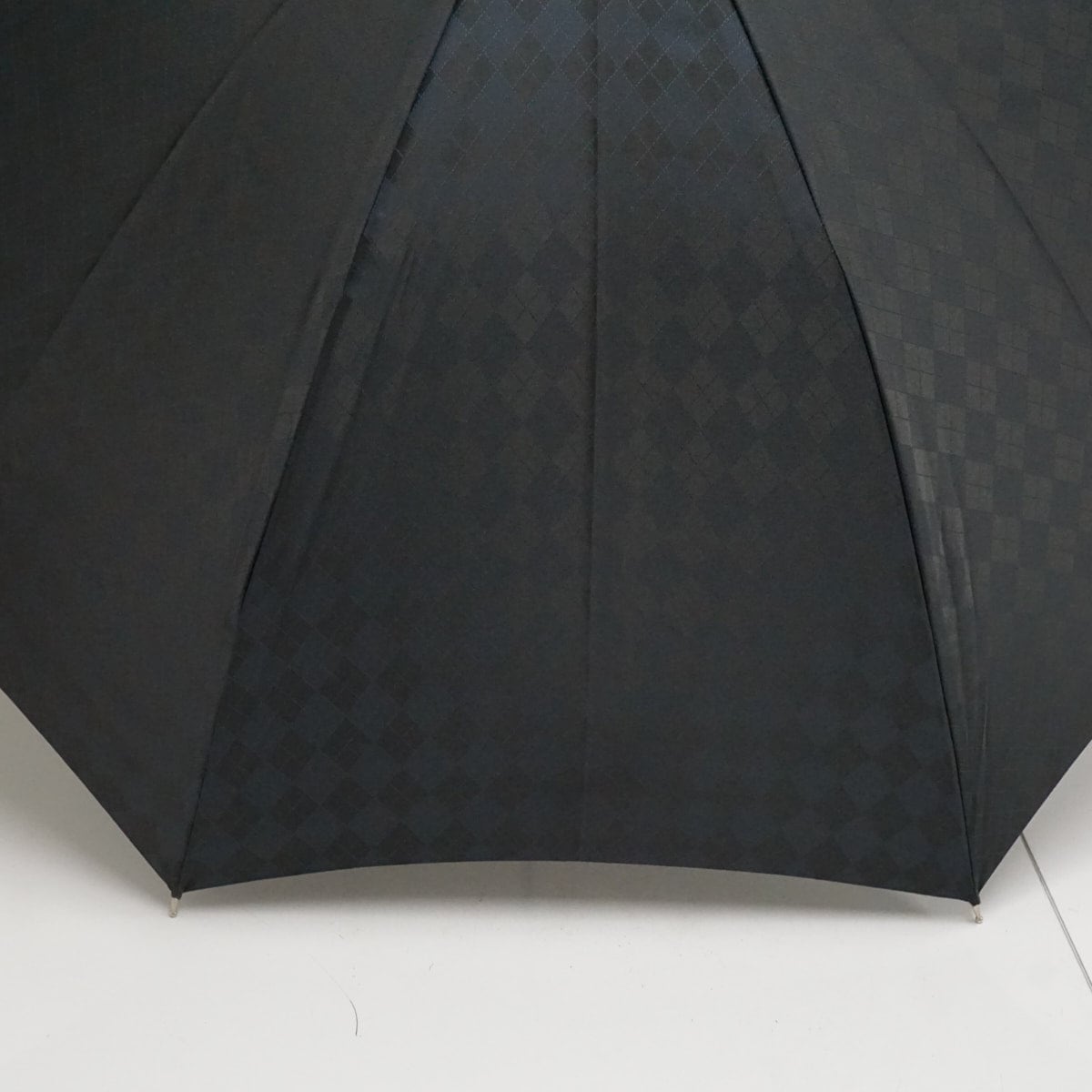 光の当たり方でアーガイル柄が浮かぶ紳士の長傘です。