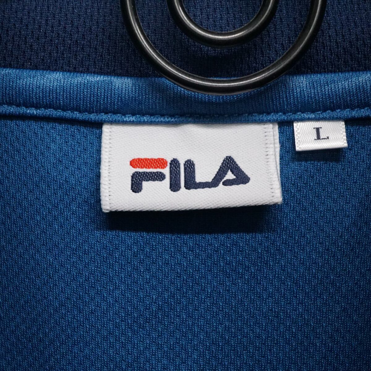 FILA フィラ エンボススタンドジャケット USED美品 メンズ Lサイズ FM6556 ブルー 薄手 ロゴ刺繍 X8994