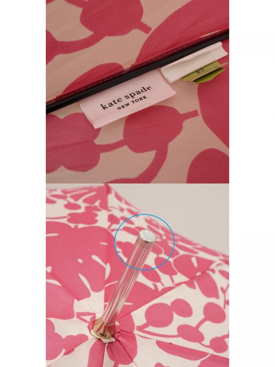 傘 kate spade NEW YORK ケイトスペード USED品 ピンク ボタニカル リーフ柄 モンステラ ブランド レディース 60cm A3428