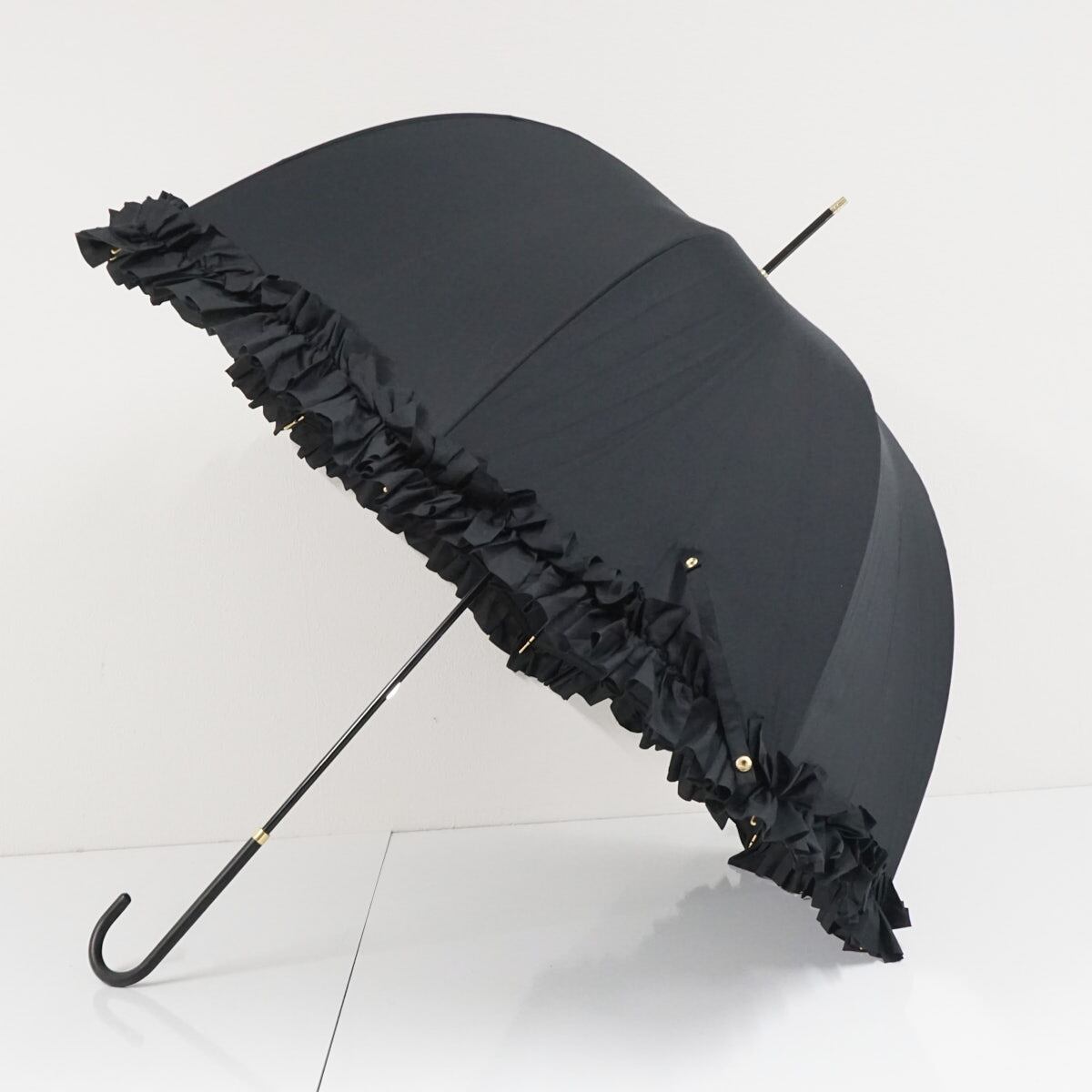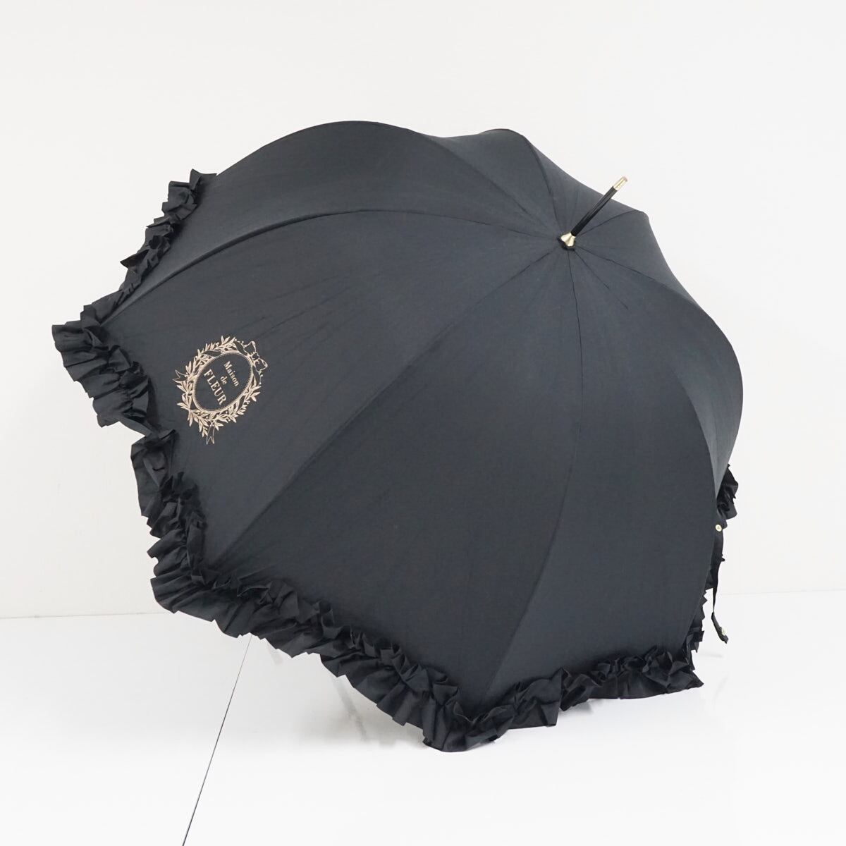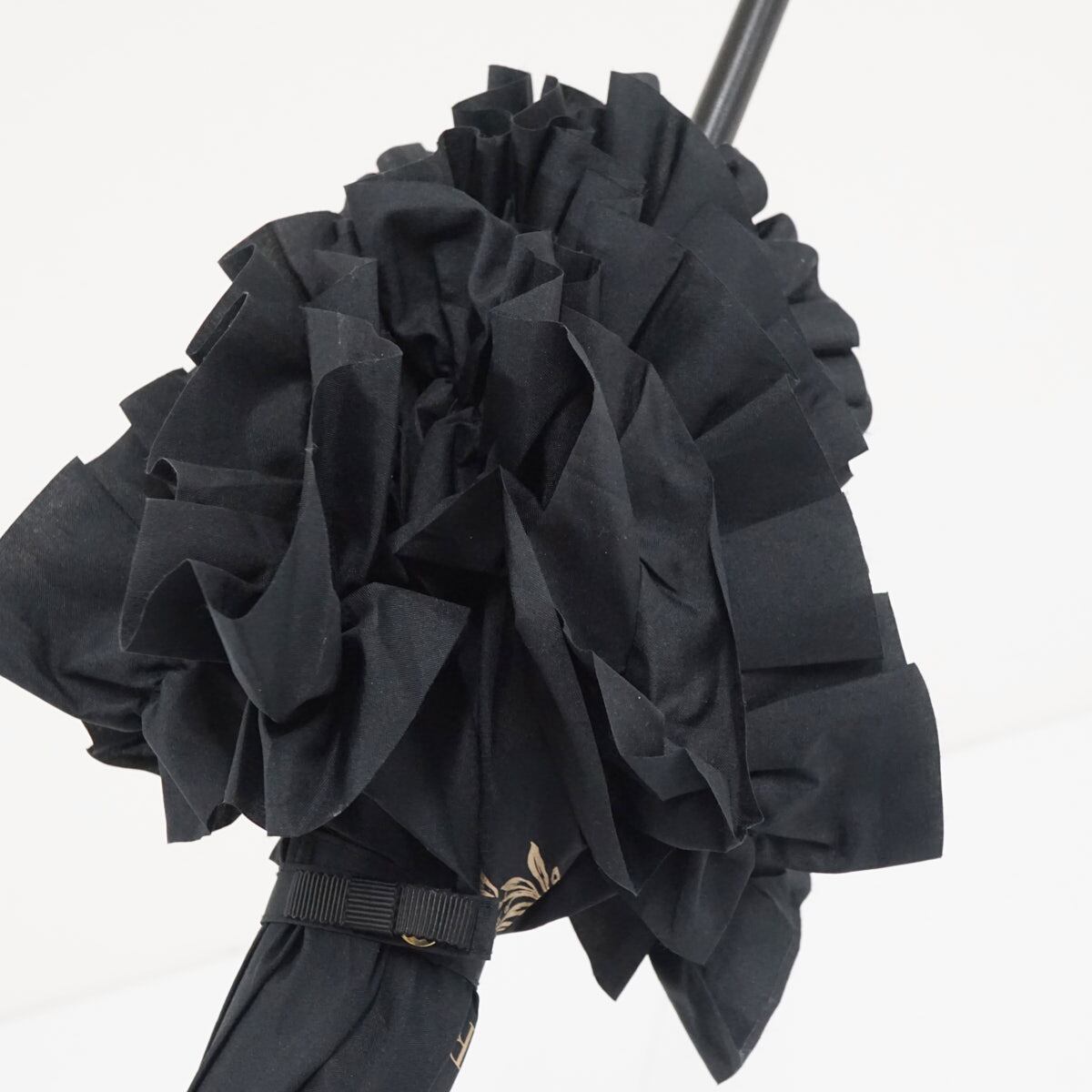 傘 Maison de FLEUR メゾンドフルール USED美品 深張り ボリュームフリル ブラック ロリータ 60cm A3432