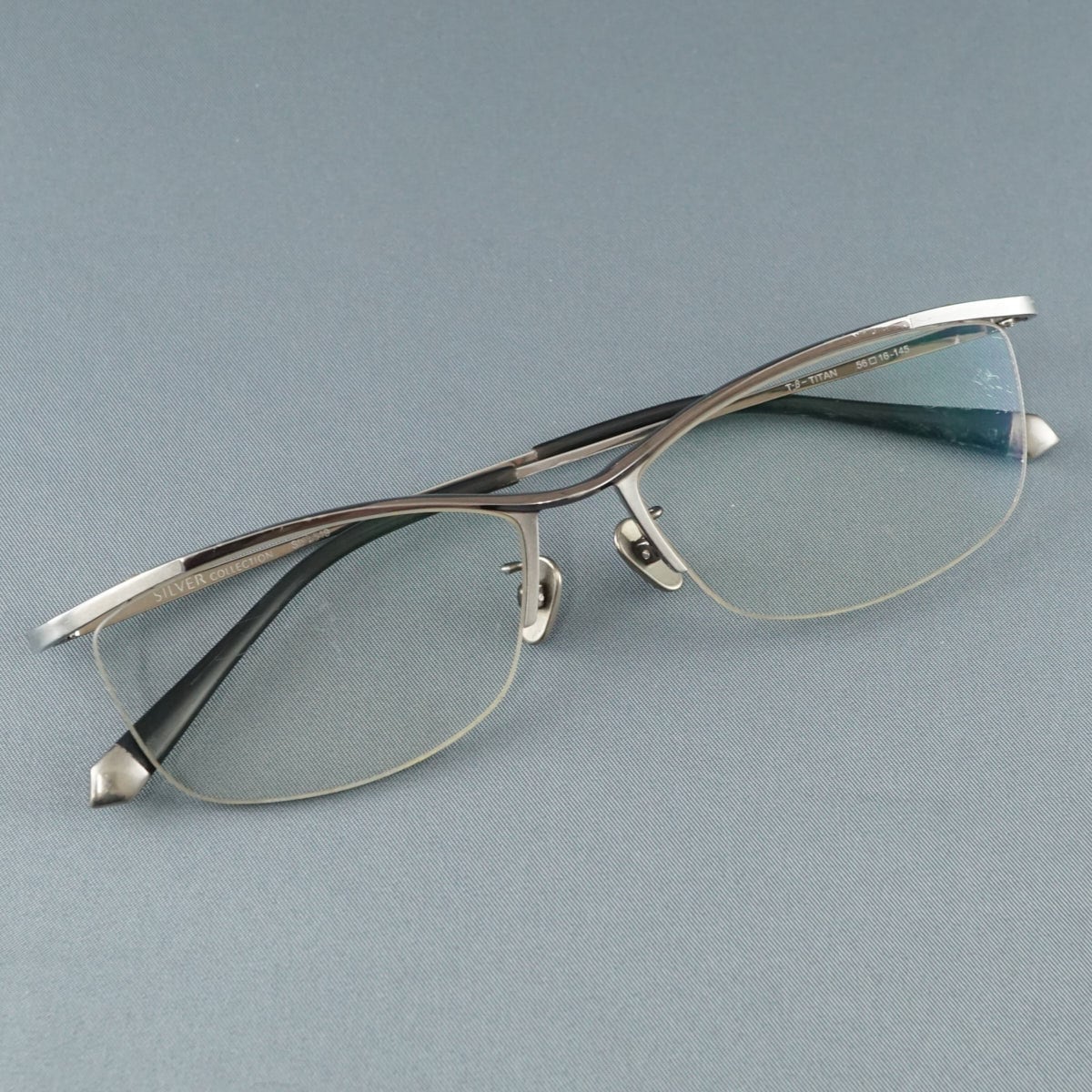 眼鏡 眼鏡市場 USED品 シルバーコレクション SLV-519 チタン ハーフリム ナイロール メンズ X9065