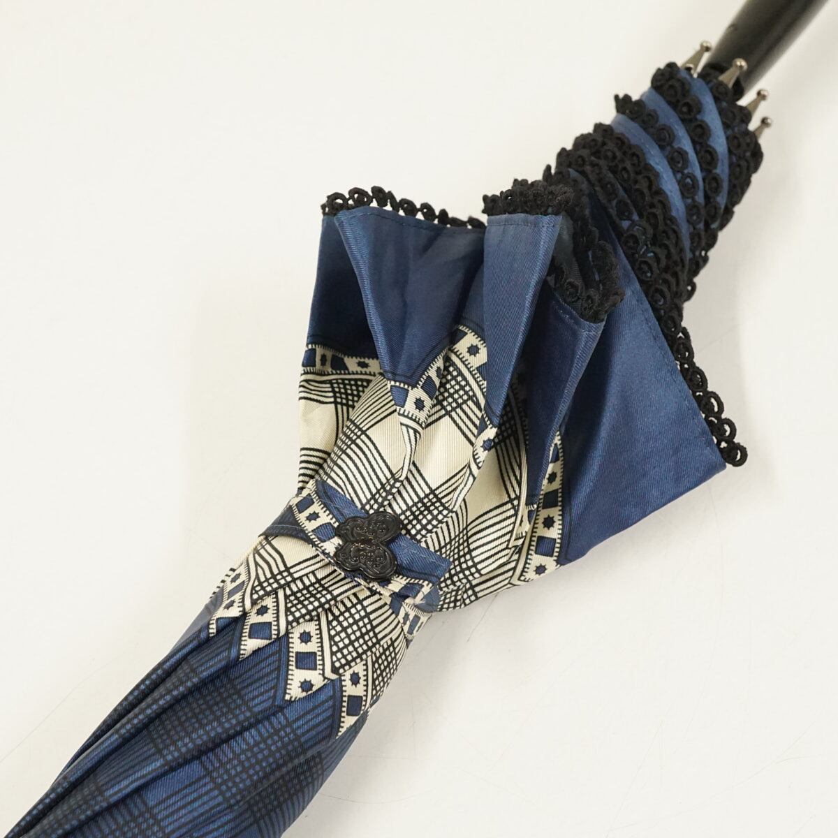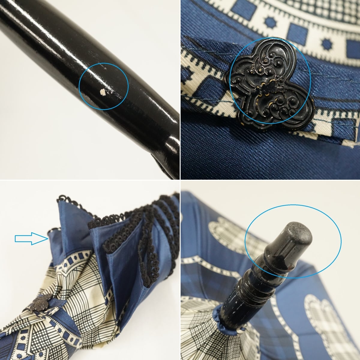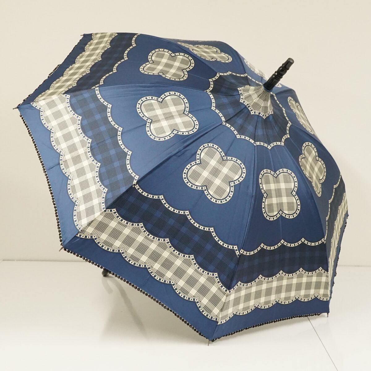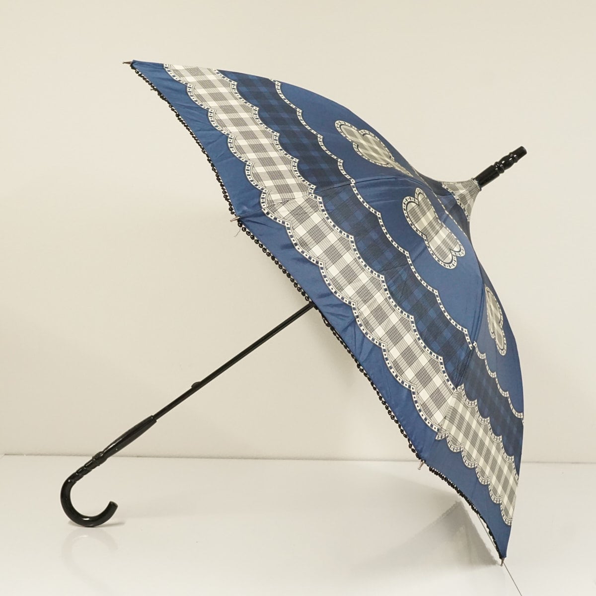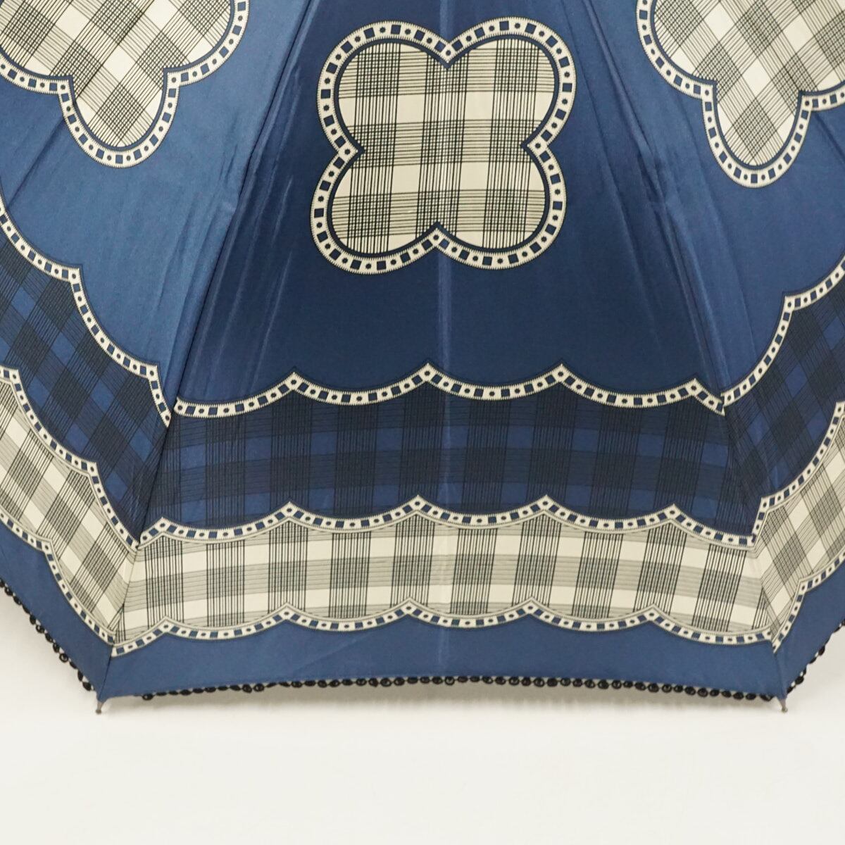 傘 ANNA SUI アナスイ パゴダ傘 USED品 クローバー チェック ブルー系 ブランド 個性的 58cm S3426