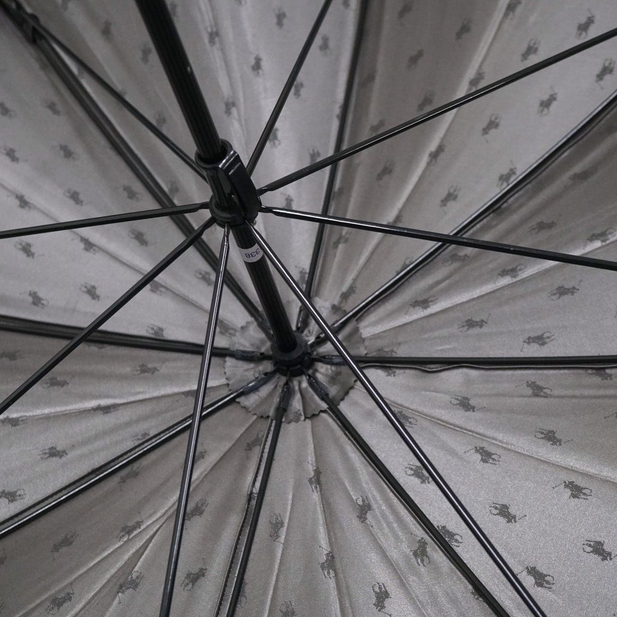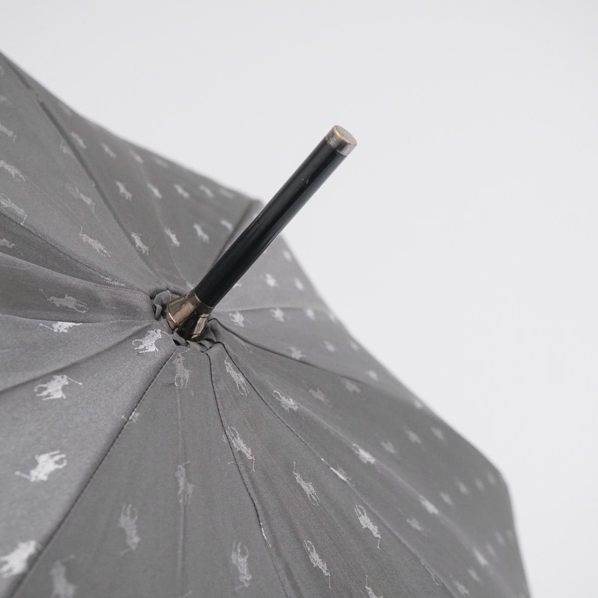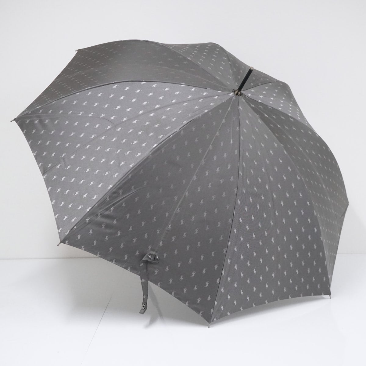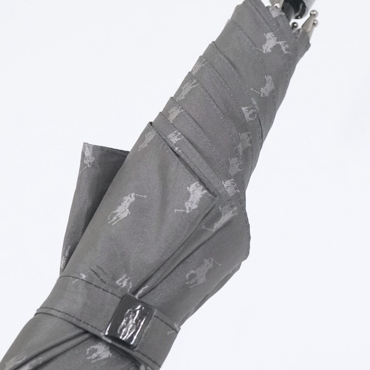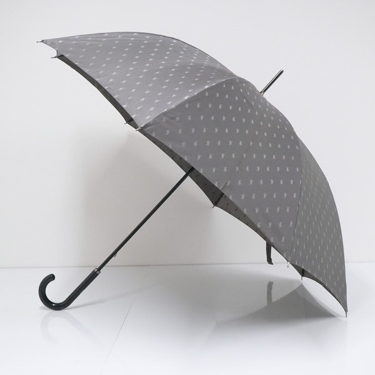 傘 POLO Ralph Lauren USED美品 ラルフローレン ポロポニー ジャガード グラス骨 高級 ダークグレー メンズ 紳士傘 大判 65cm S3449