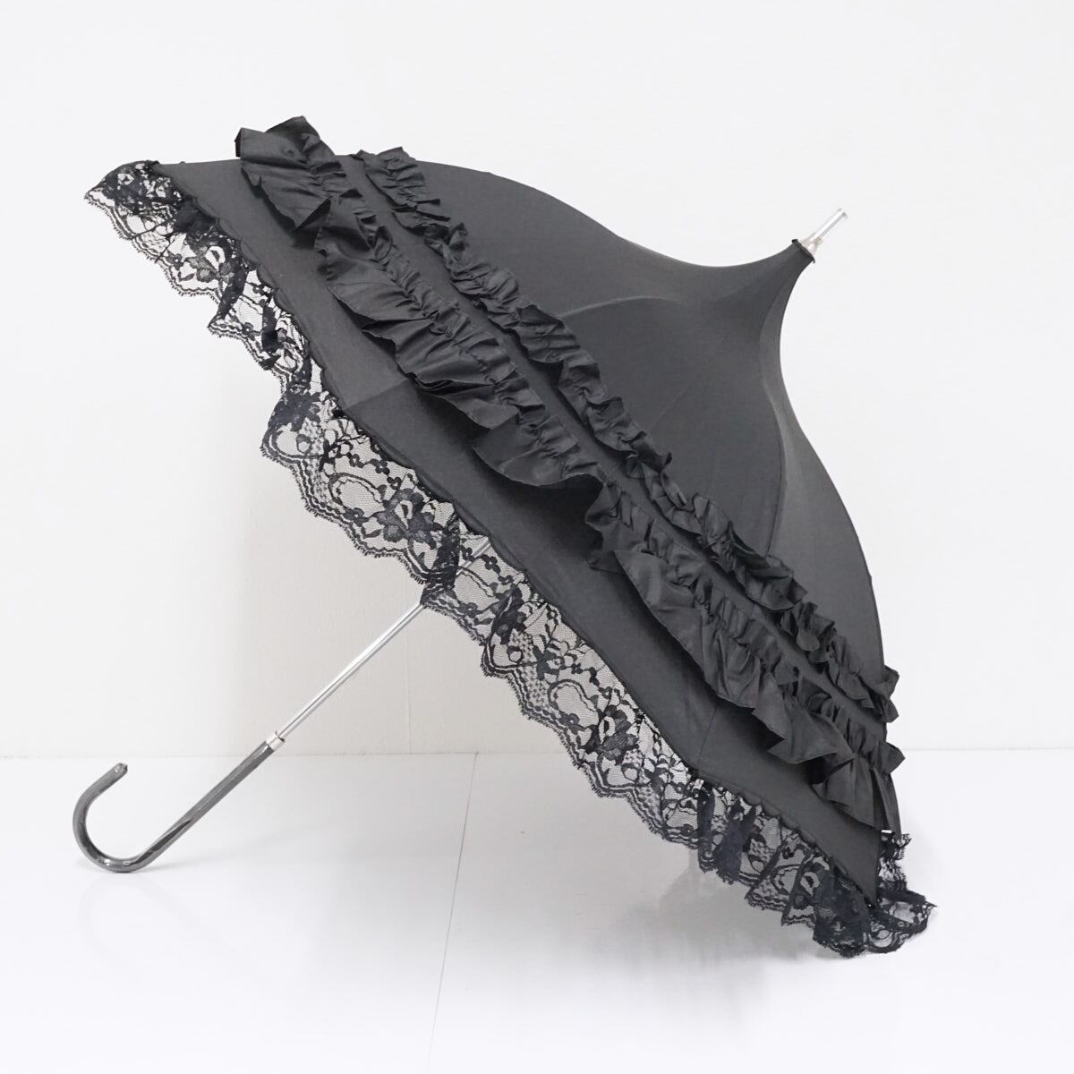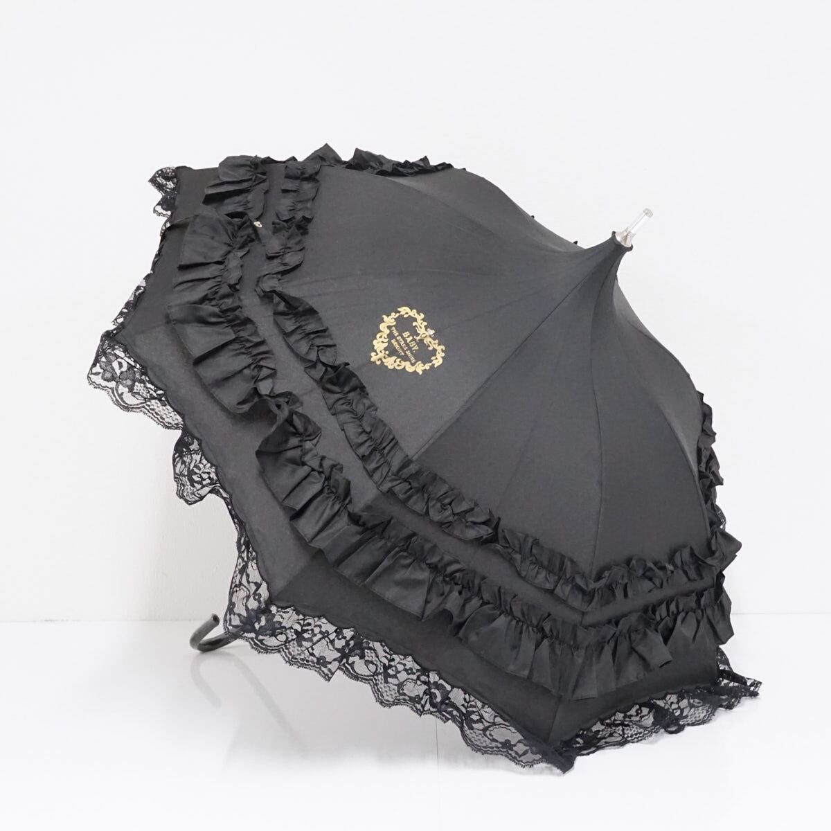 傘 BABY, THE STARS SHINE BRIGHT ベイビーザスターズシャインブライト USED美品 パゴダ ボリュームフリル ブラック 晴雨兼用 47cm A3462