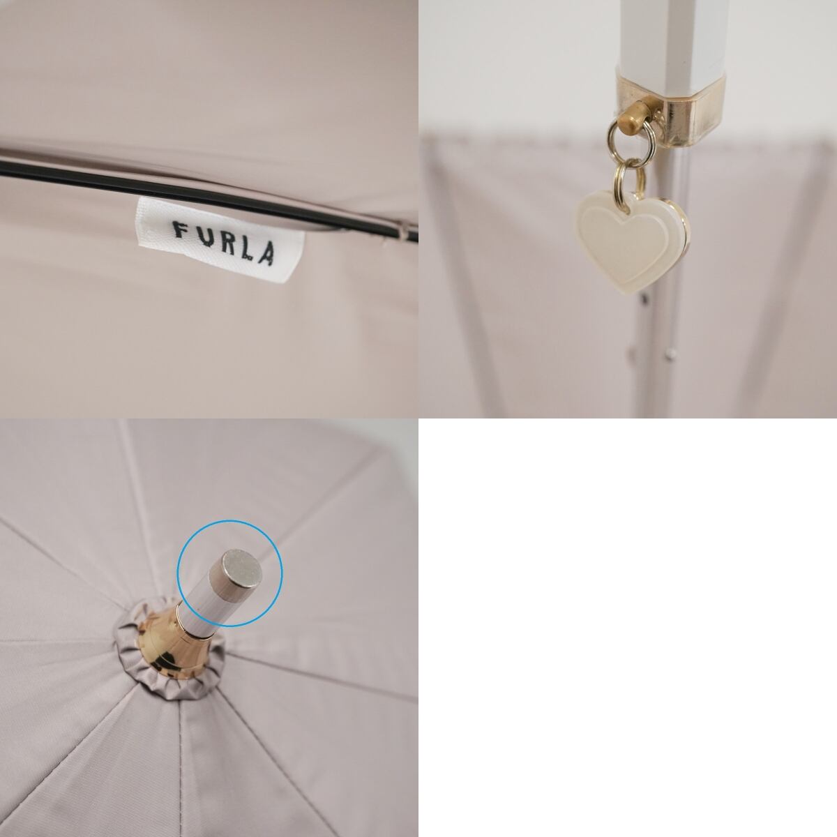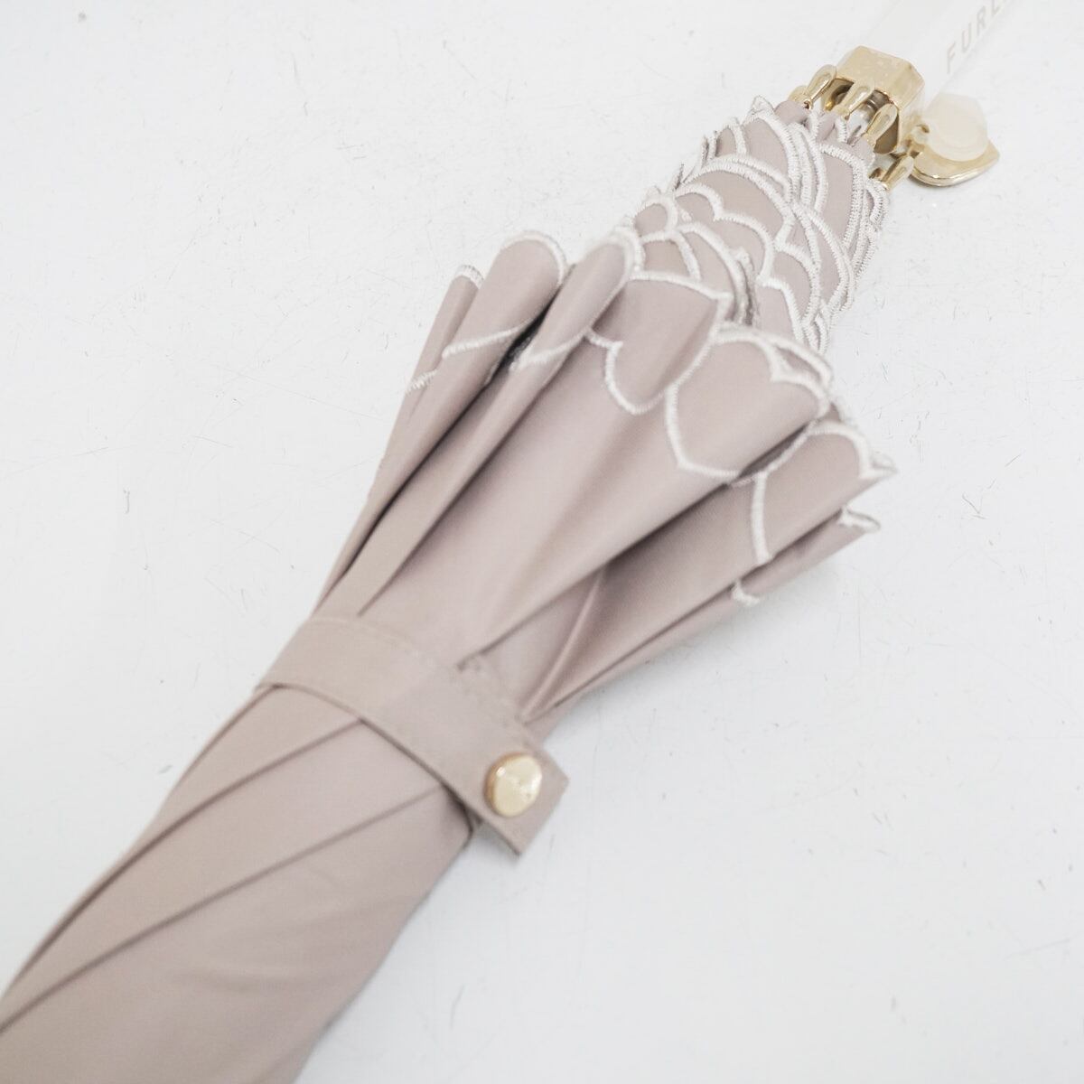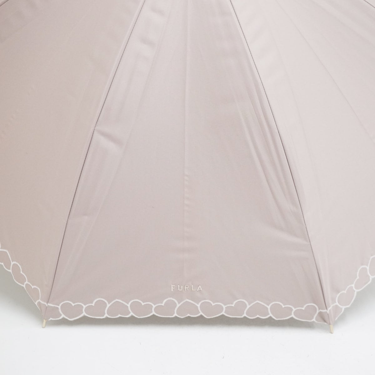 晴雨兼用日傘 FURLA フルラ USED美品 ハート刺繍 UV 遮光 レディース ブランド ハートチャーム グレージュ 50cm S3456