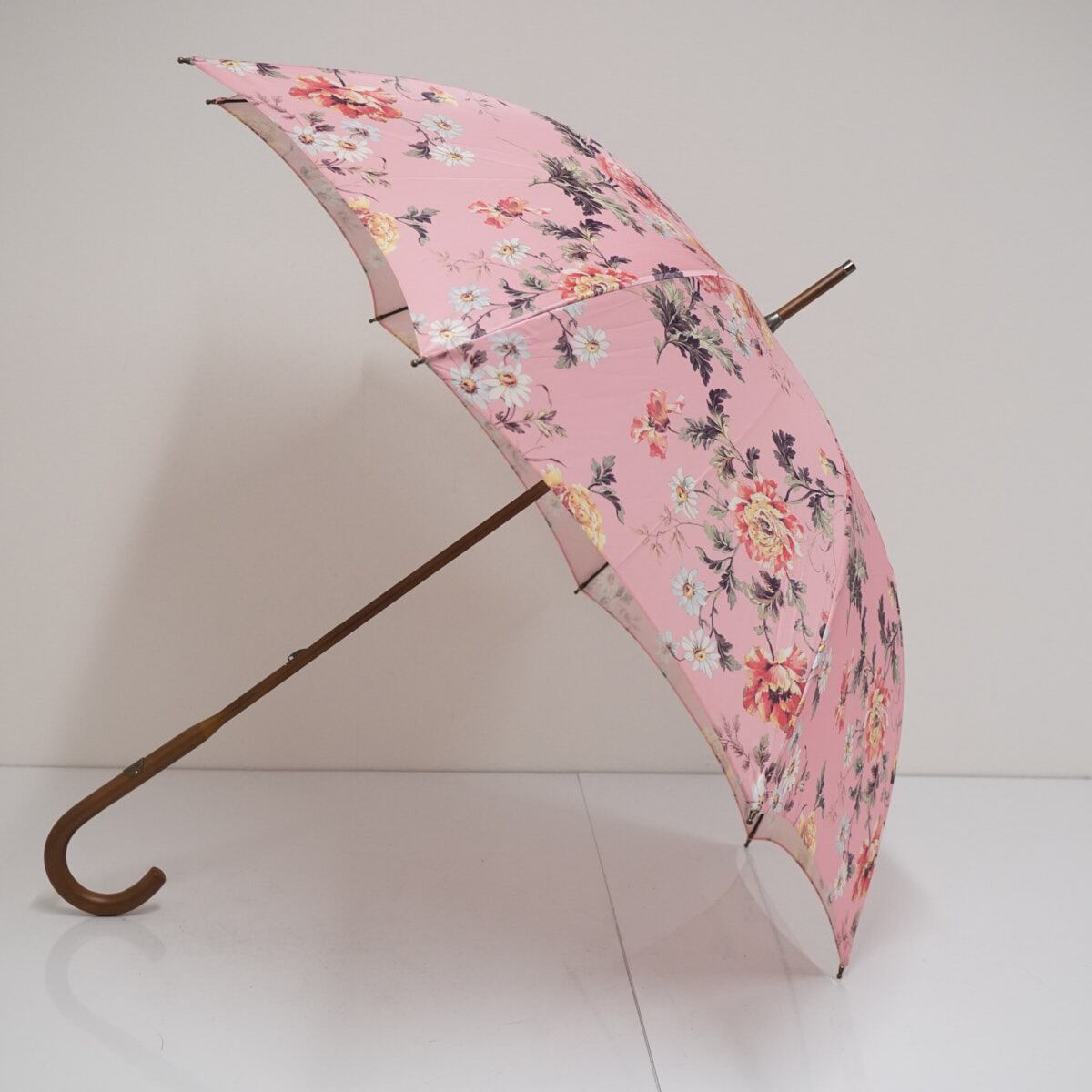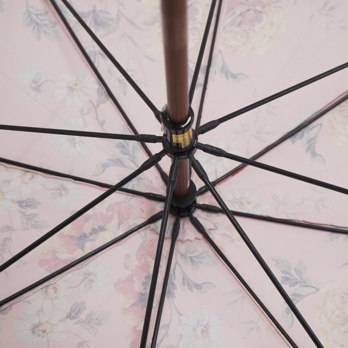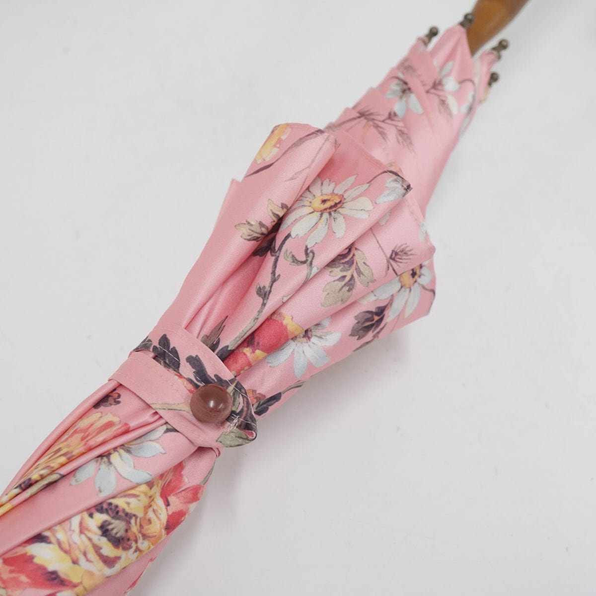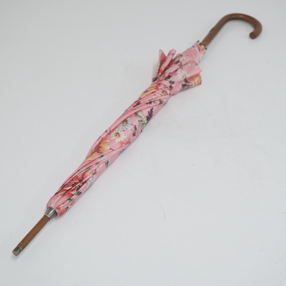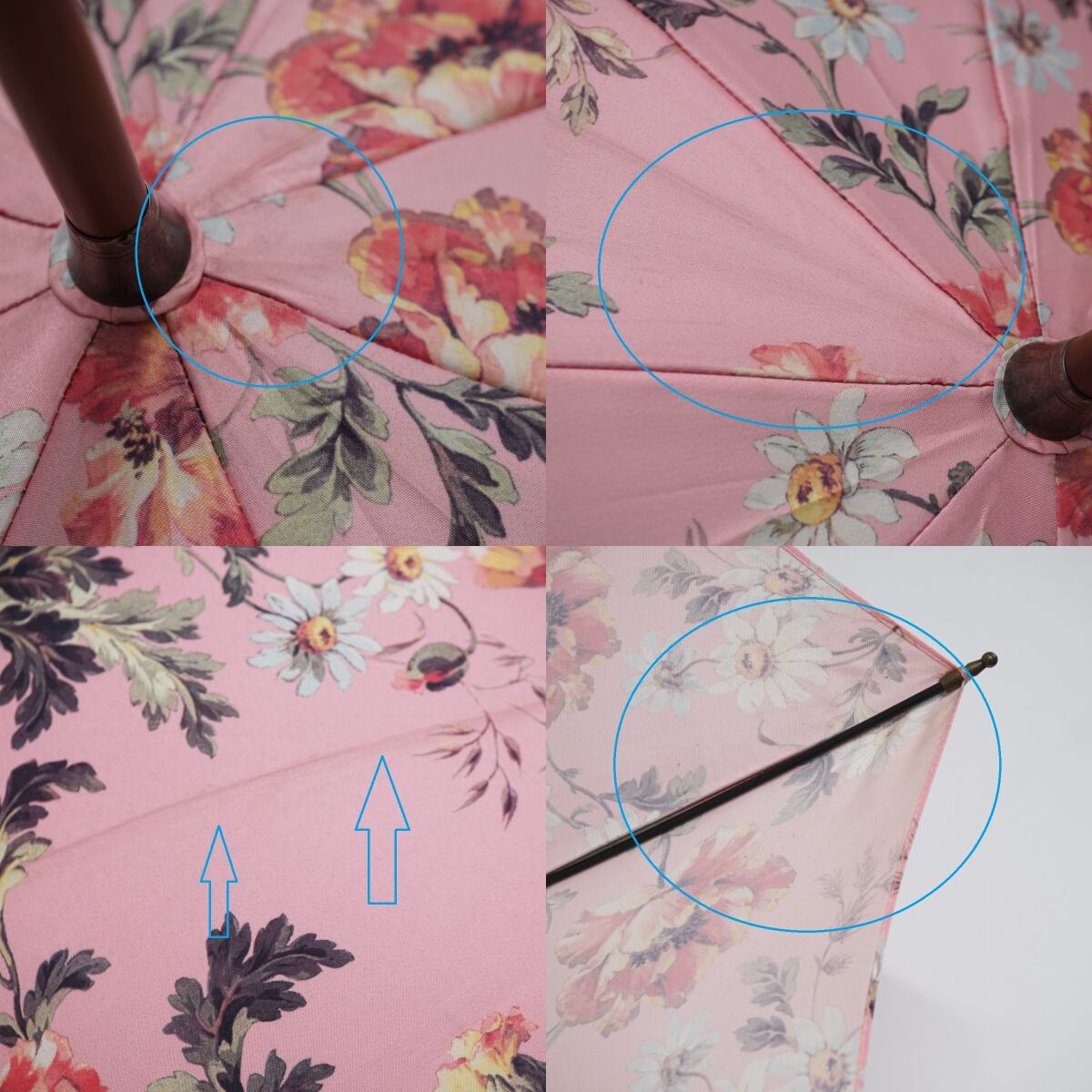 傘 NIGATA AURORA 新潟オーロラ USED品 日本製 フラワープリント ピンク 木製手元 58cm A3457