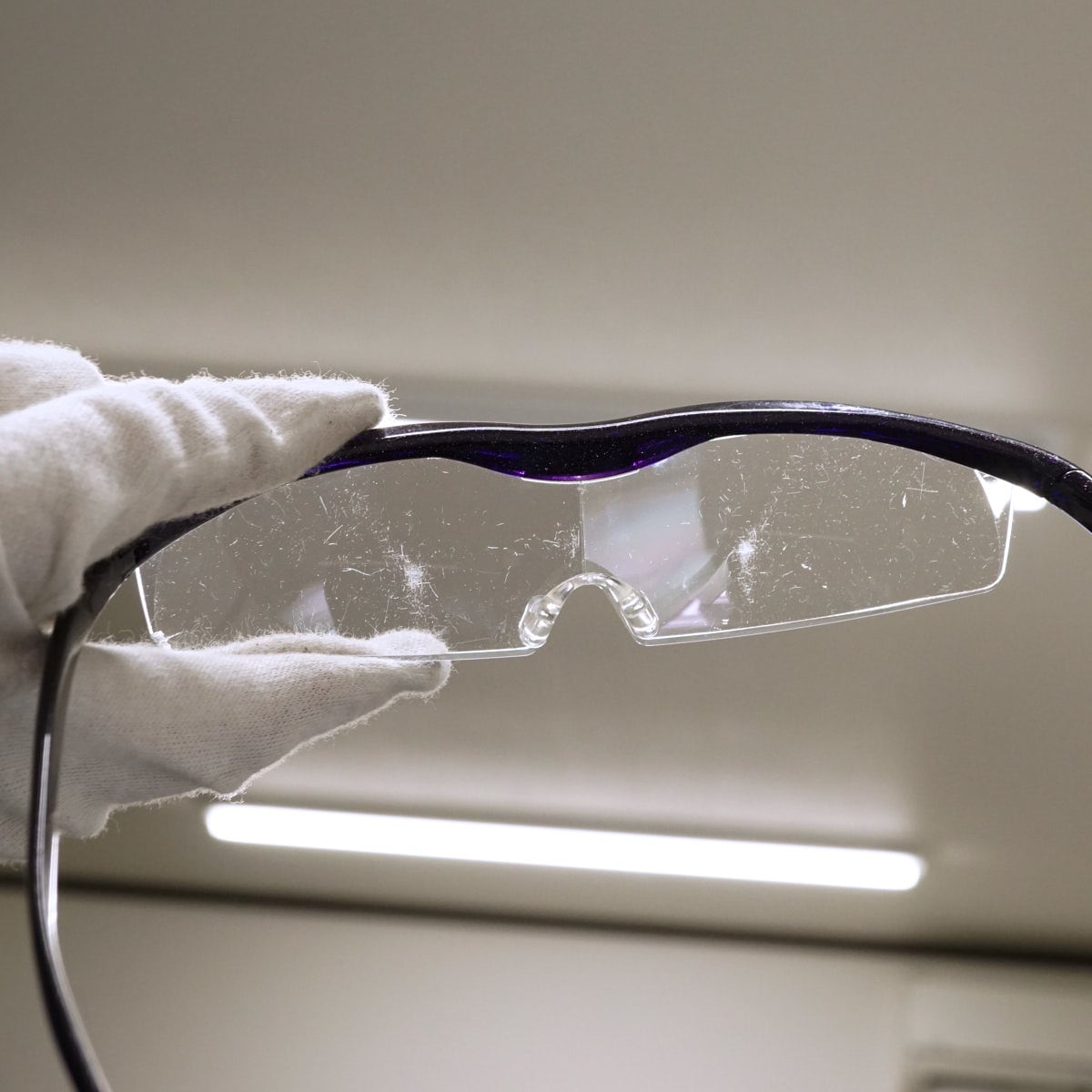 ※レンズにスレ、小キズがかなりあります。また、カケやヒビがあります。(一部を画像にてご確認ください。視界に若干入り込みますが、視認性にはあまり影響ございません。)