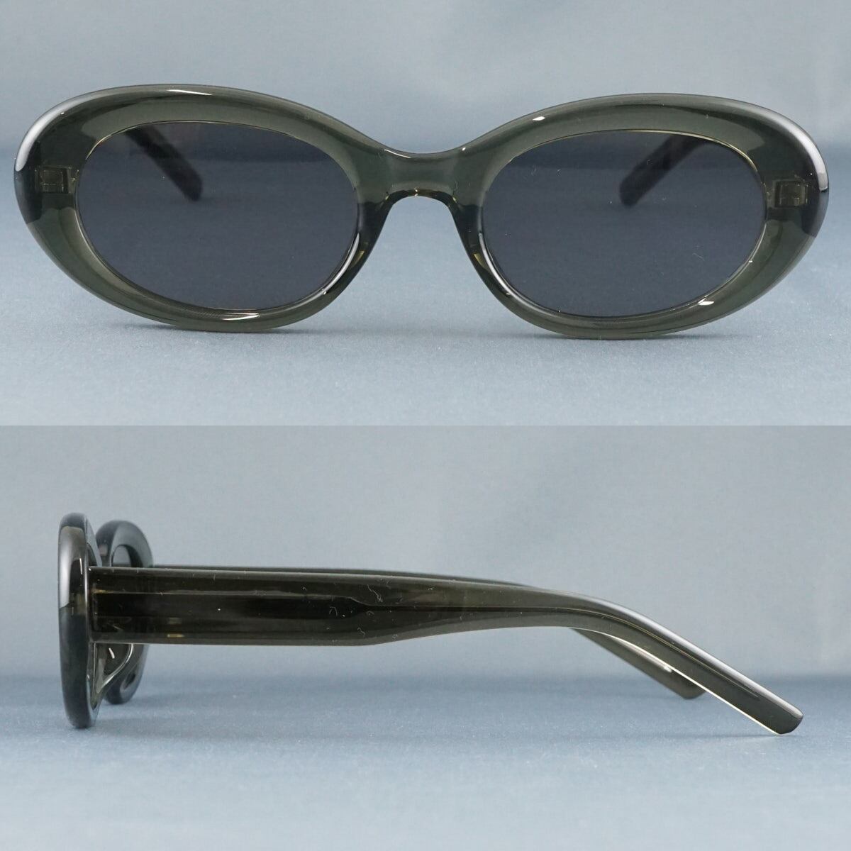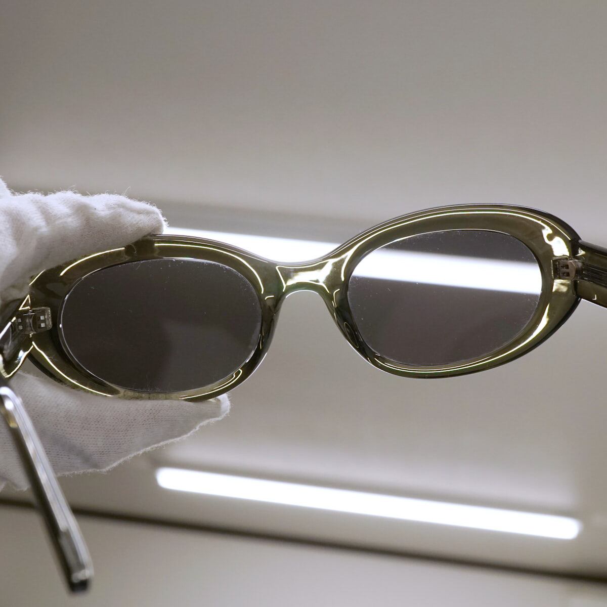 クリアなカーキのカラーとキャットアイ系のオーバル型が今っぽくおしゃれです。