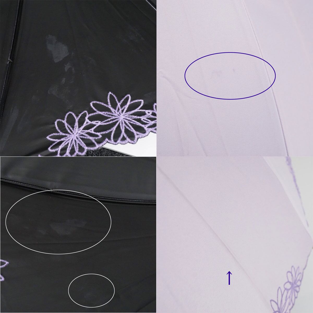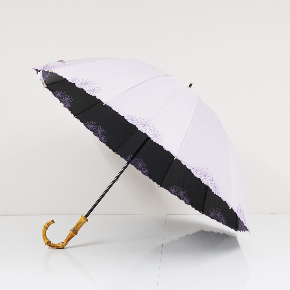 日傘 晴雨兼用 Wpc. UVO ウーボ USED美品 12本骨 ライトパープル 遮光 遮熱 UV 刺繍 フラワー 最強の日傘 寒竹手元 グラス骨 A3479