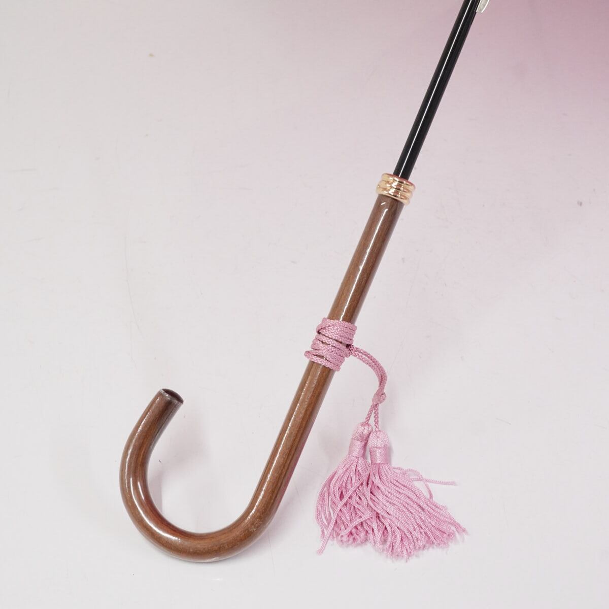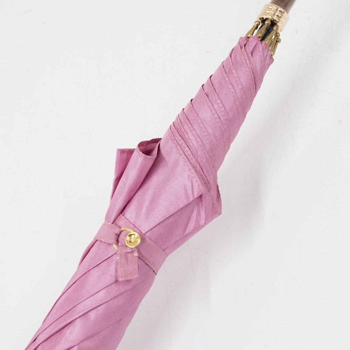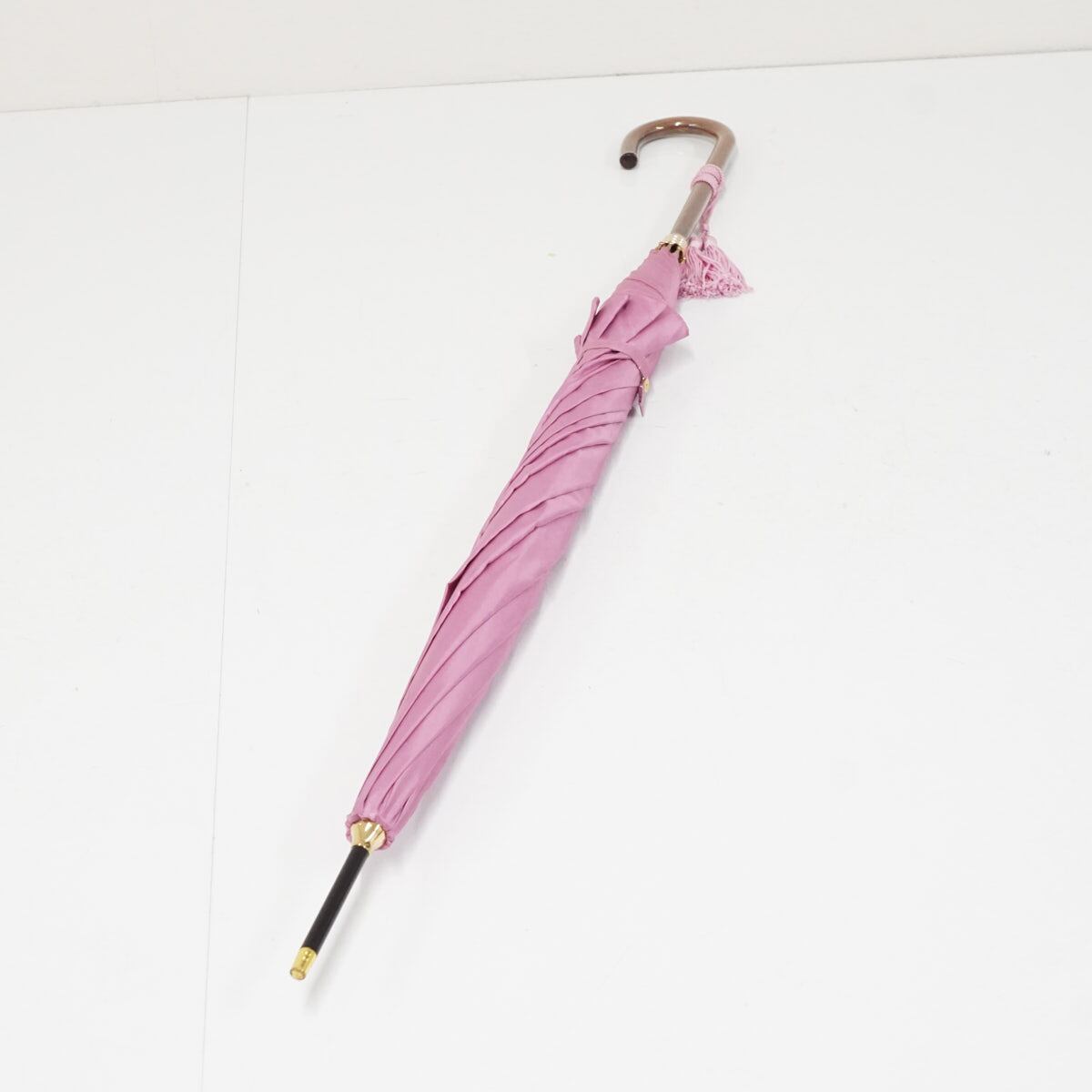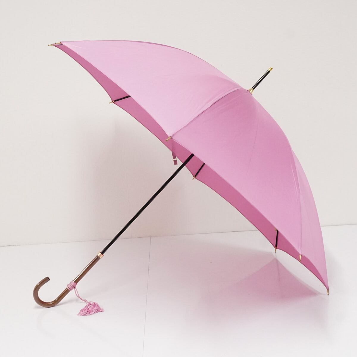 傘 WAKAO ワカオ USED美品 シンプル ライラック 無地 高級 日本製 富士絹 タッセル付き スリム長傘 55cm A3467