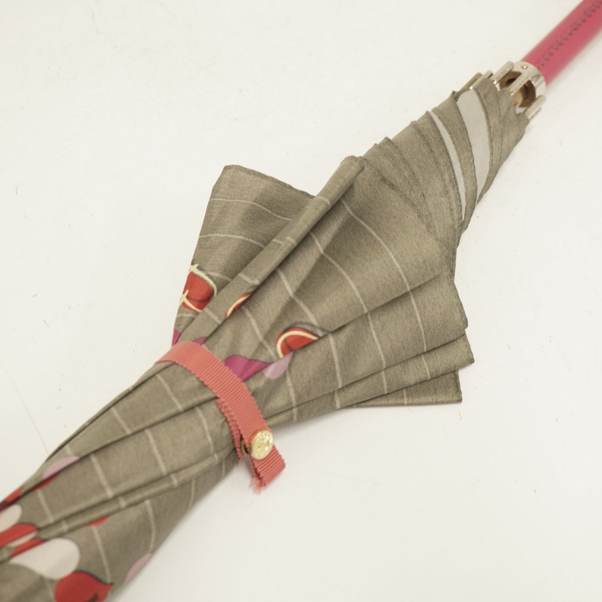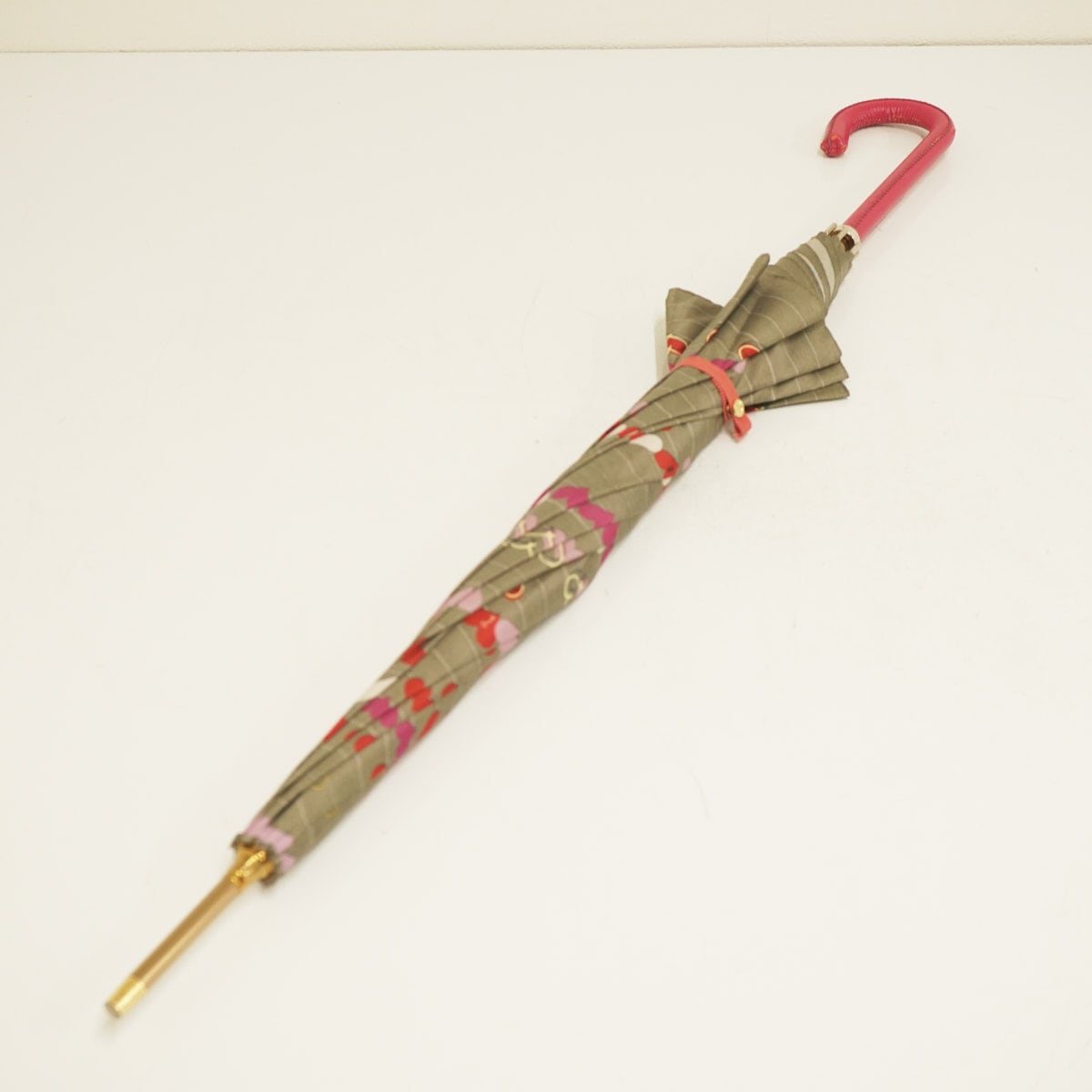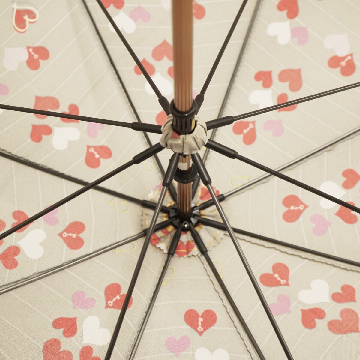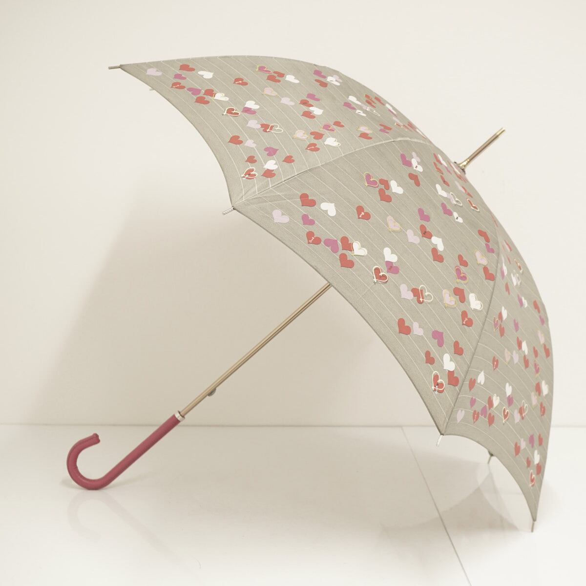 傘 HANWAY ハンウェイ 高級傘 USED品 ハート柄 グレー系 レザー手元 レディース 60cm S3478