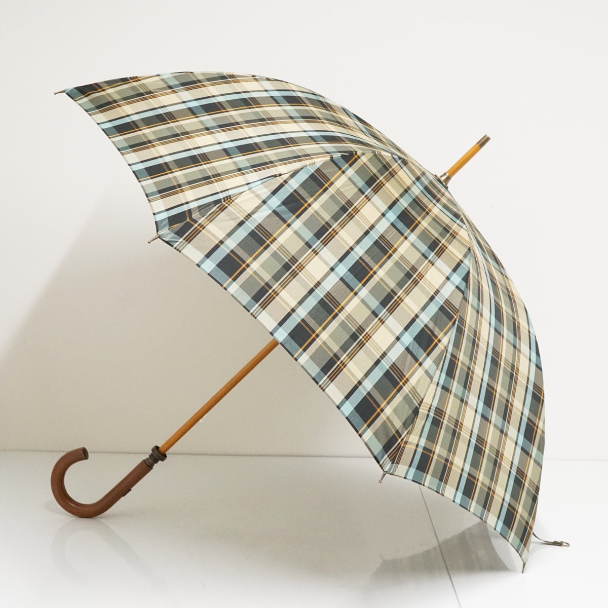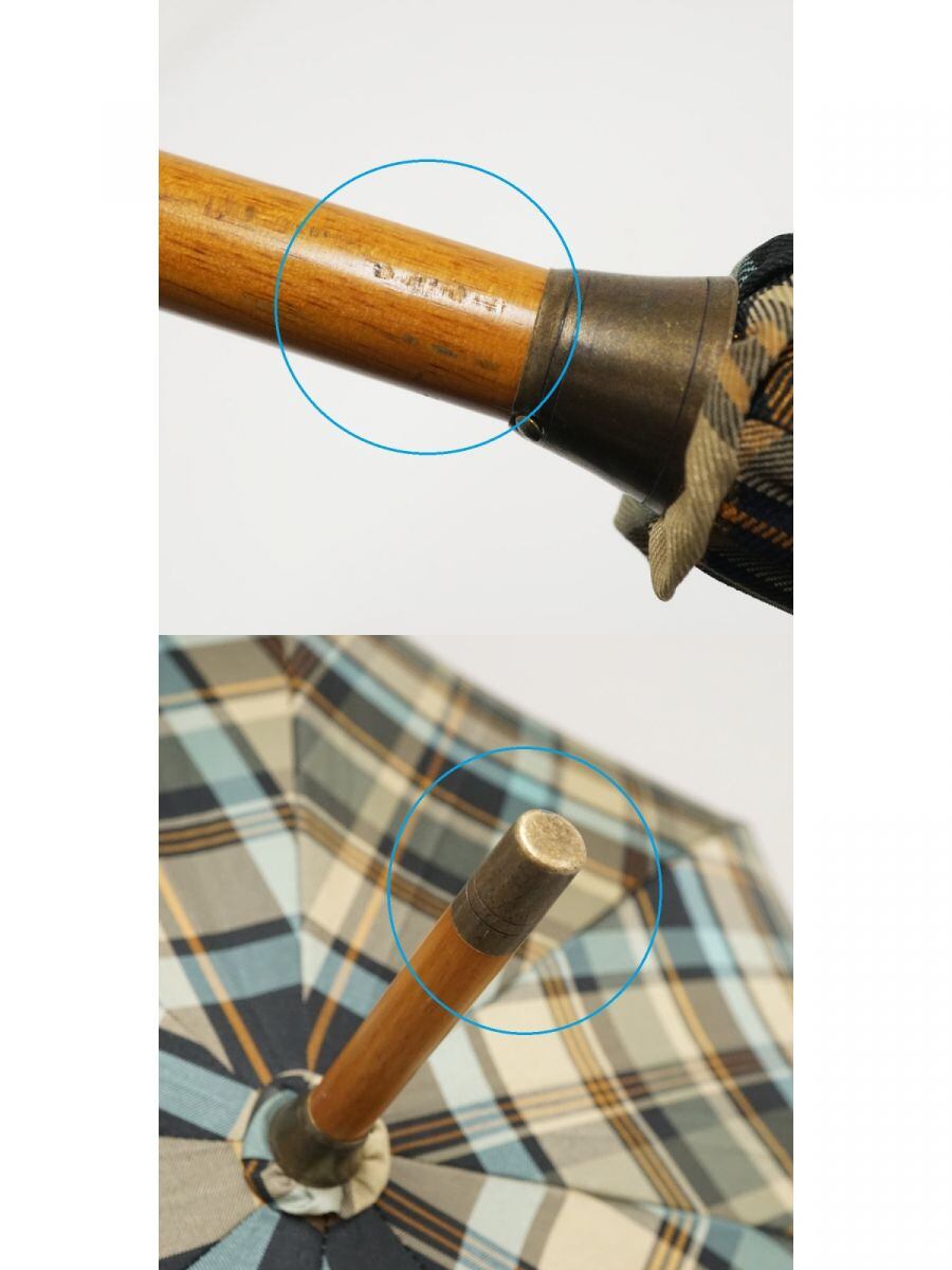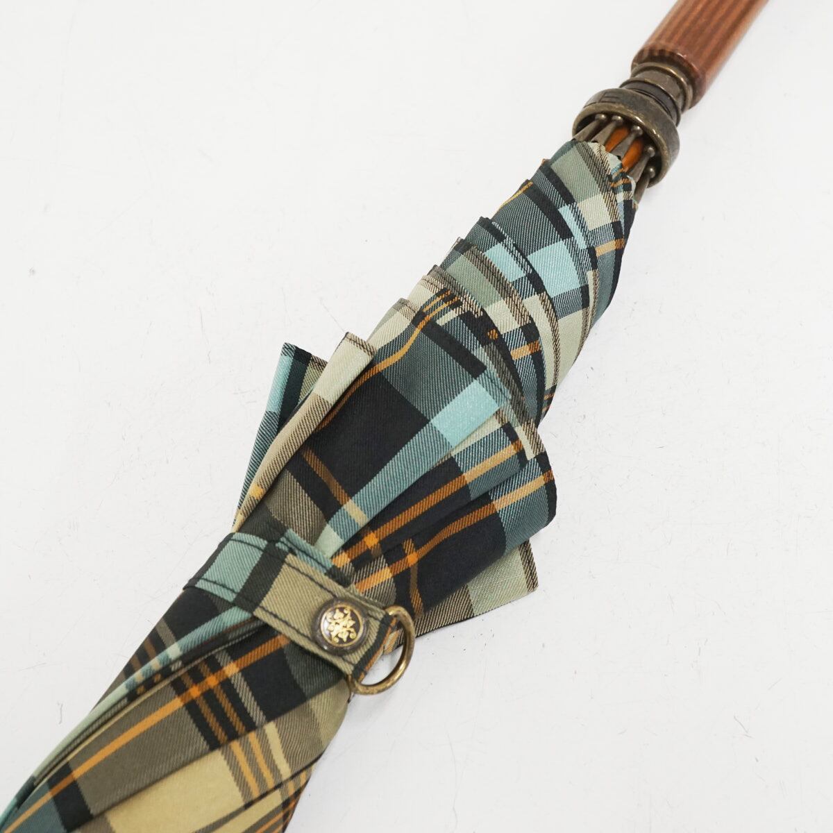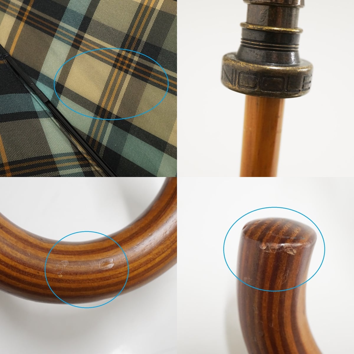 紳士傘 NICOLE ニコル USED美品 チェック ブランド メンズ 木製手元 65cm S3481