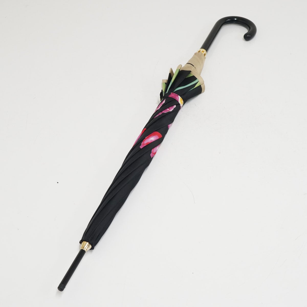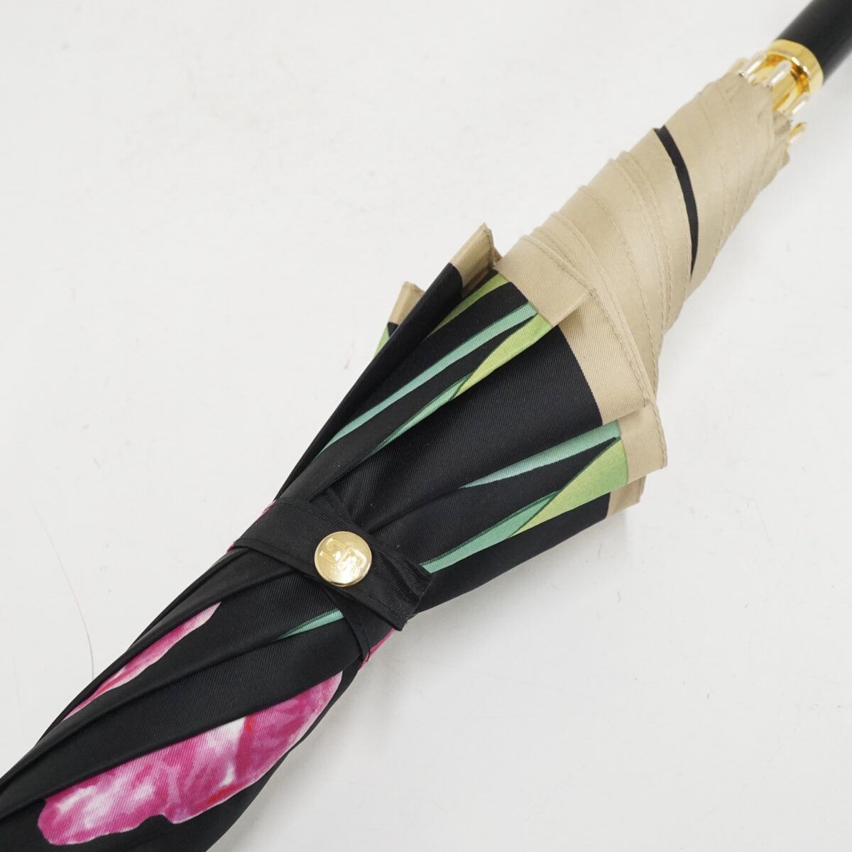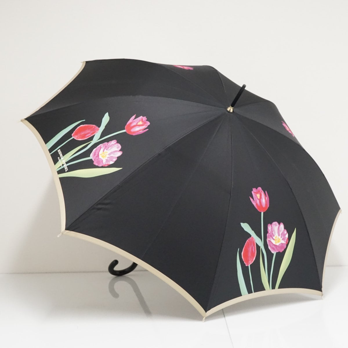 傘 SONIA RYKIEL ソニアリキエル USED美品 フラワー アート ブラック カーボン骨 60cm A3485
