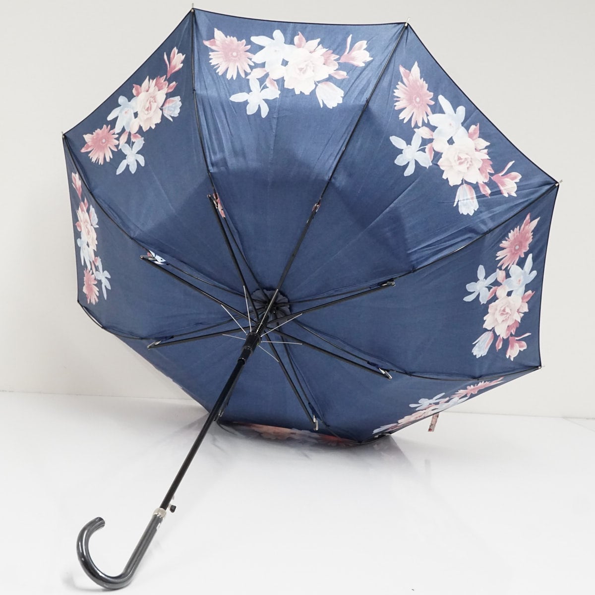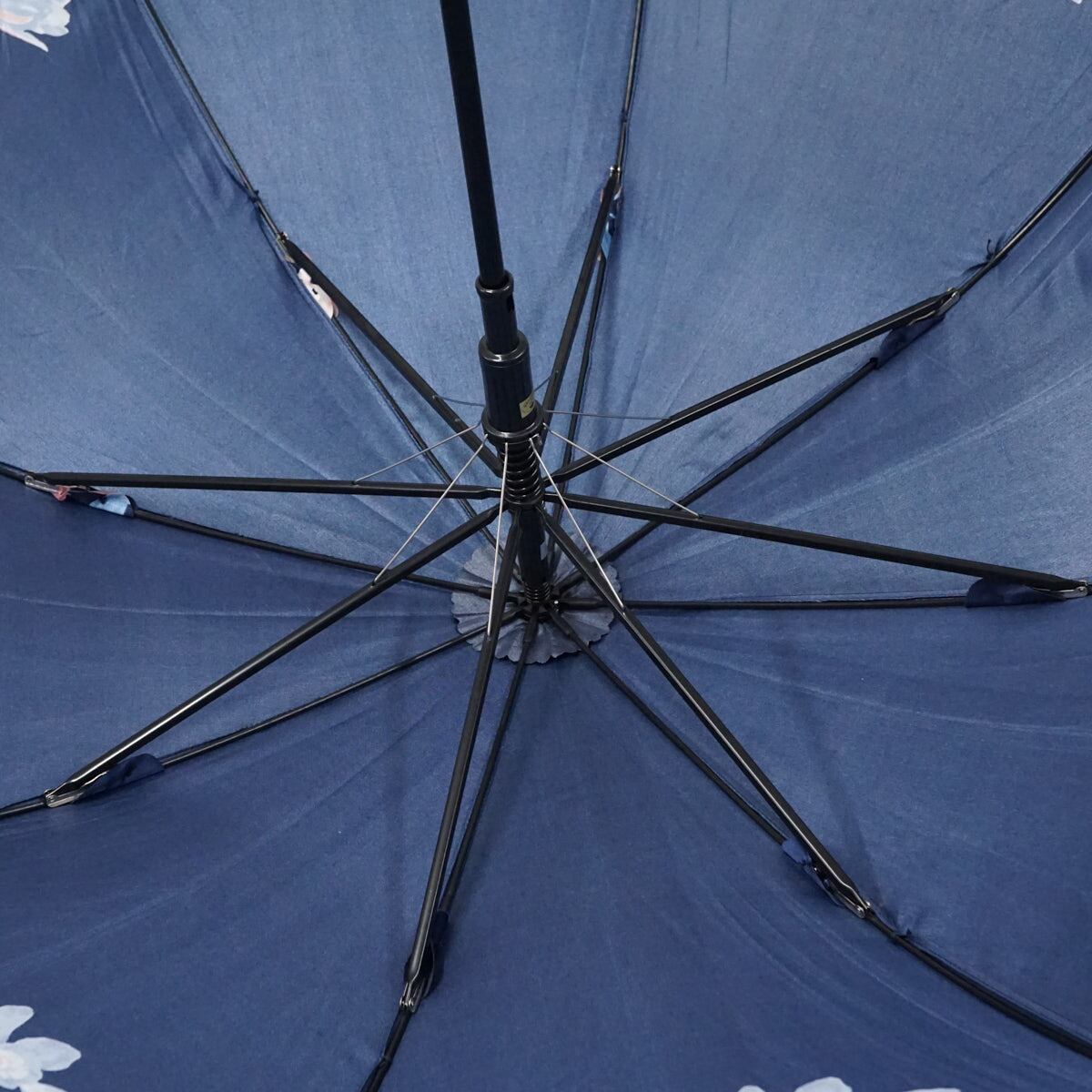 傘 mila schon ミラショーン USED美品 耐風 ネイビー エレガント フラワー ジャンプ 60cm A3495