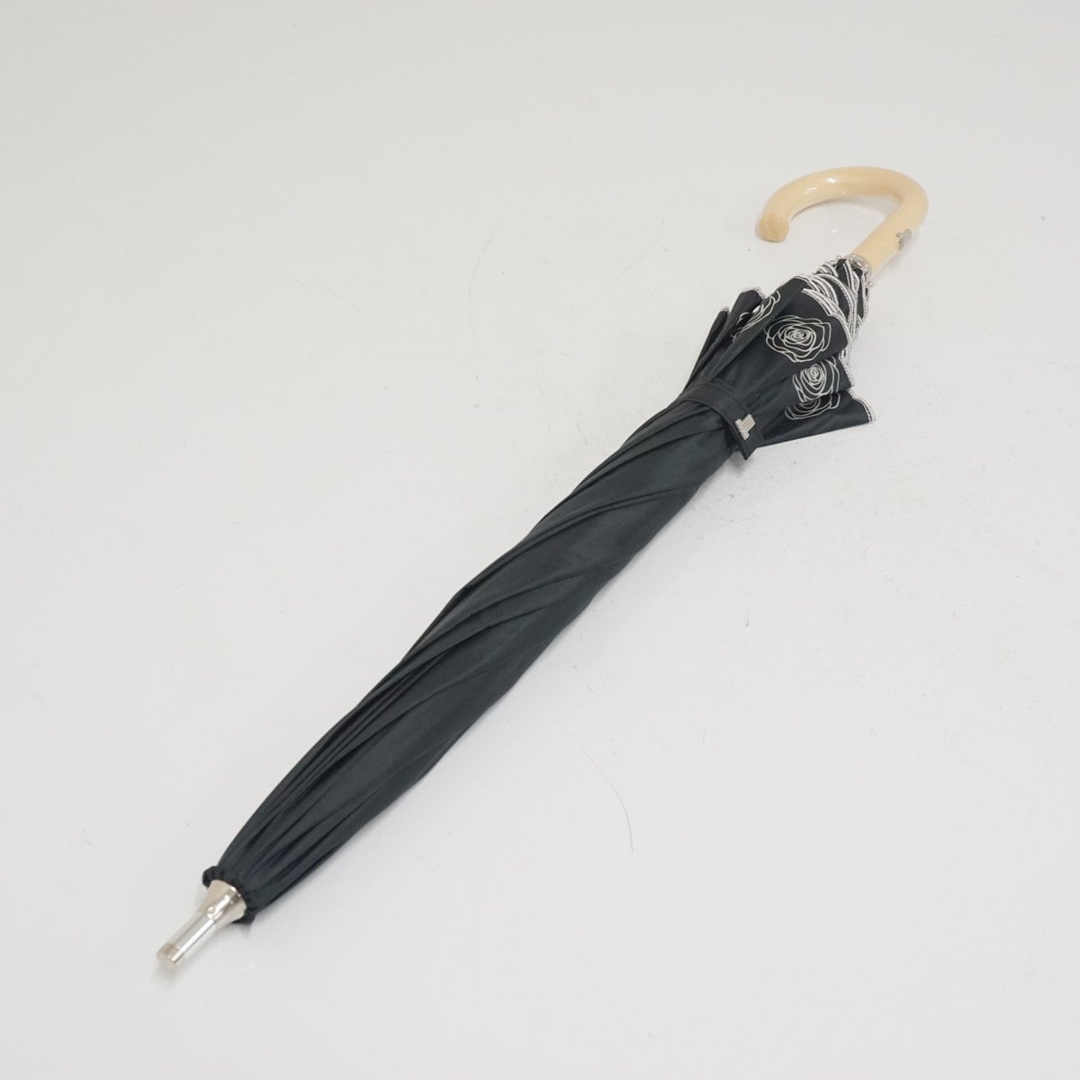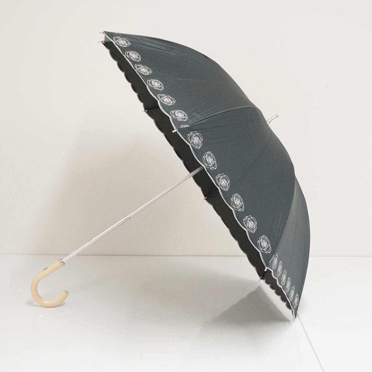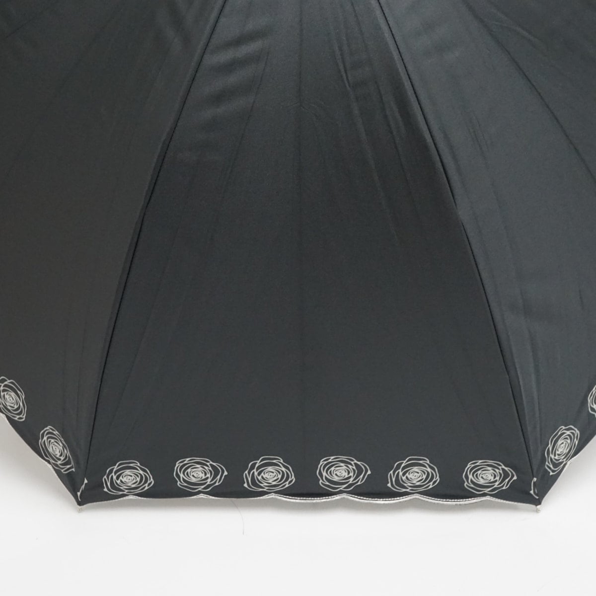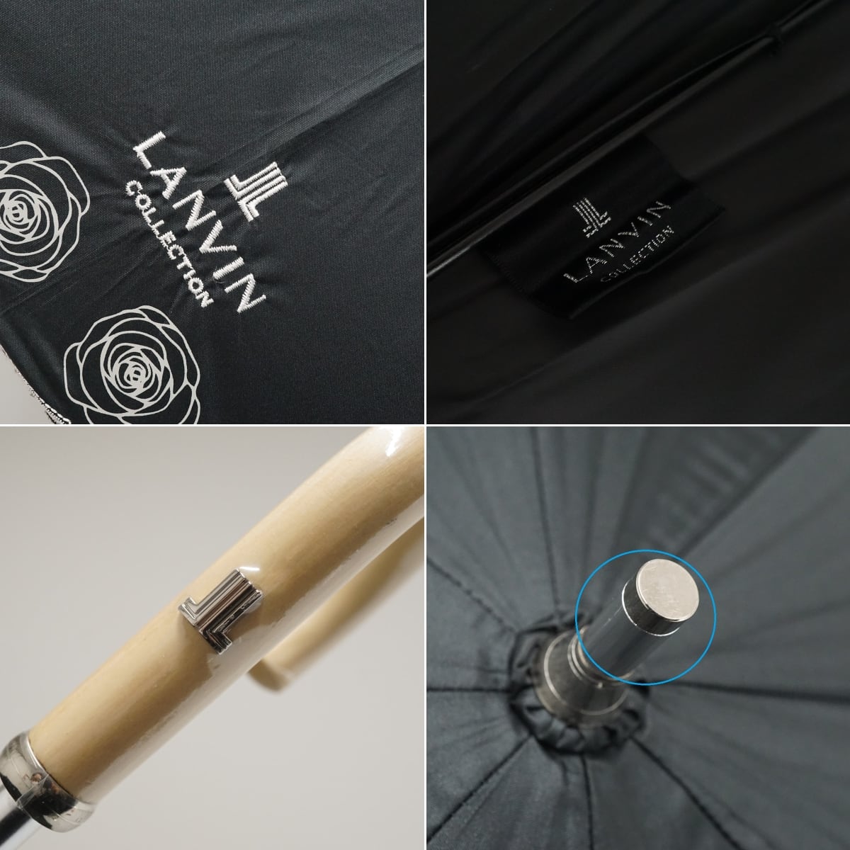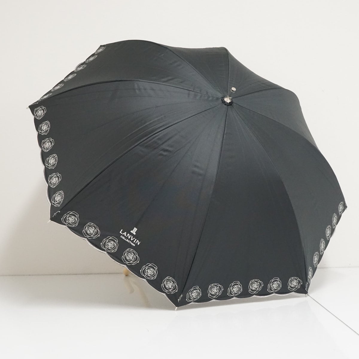 晴雨兼用日傘 LANVIN COLLECTION ランバンコレクション USED美品 薔薇 フラワー ブラック 遮光 UV 50cm S3488