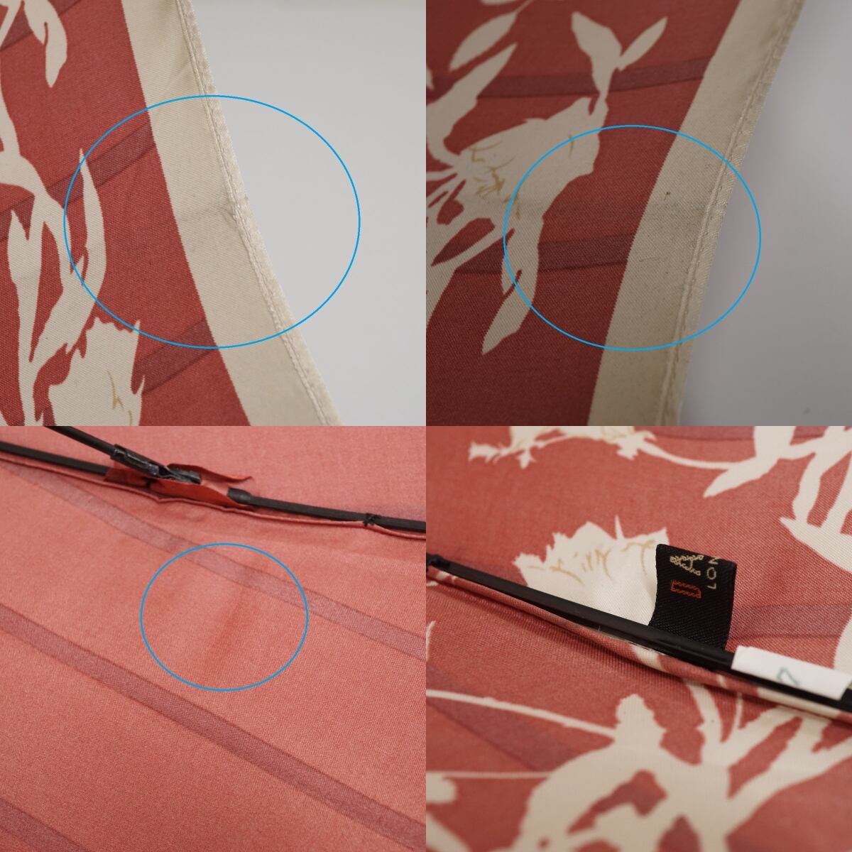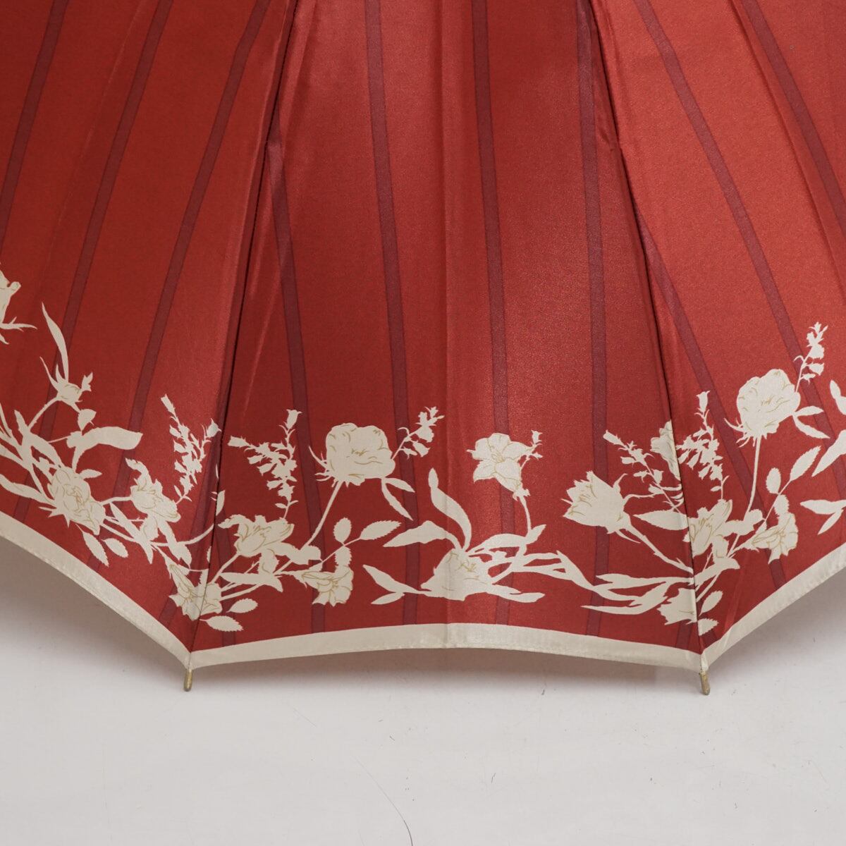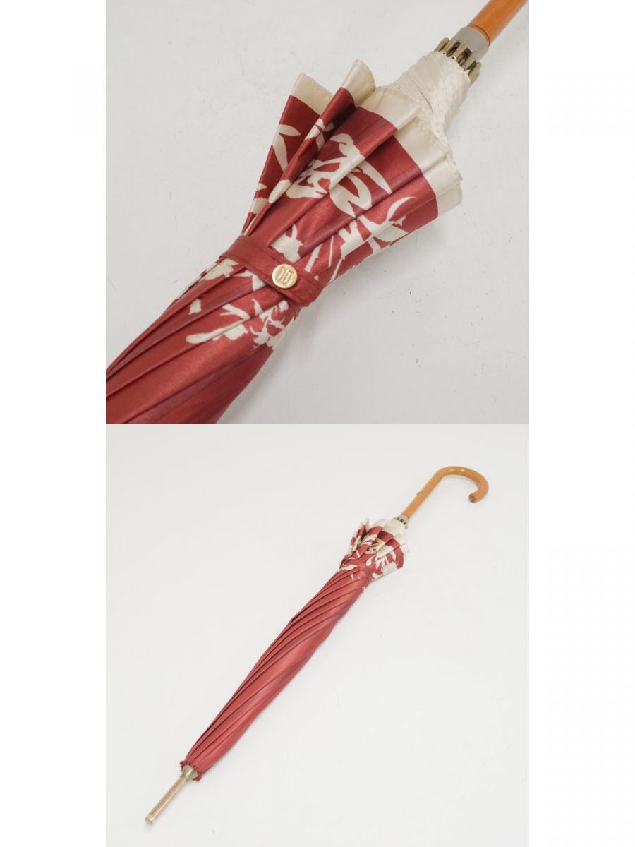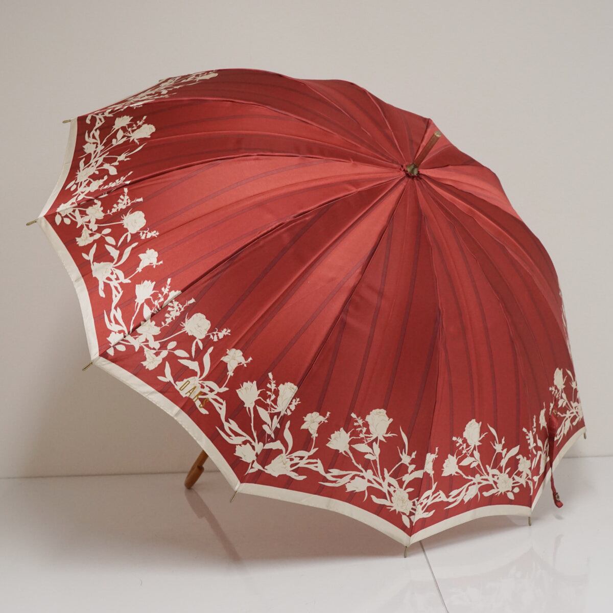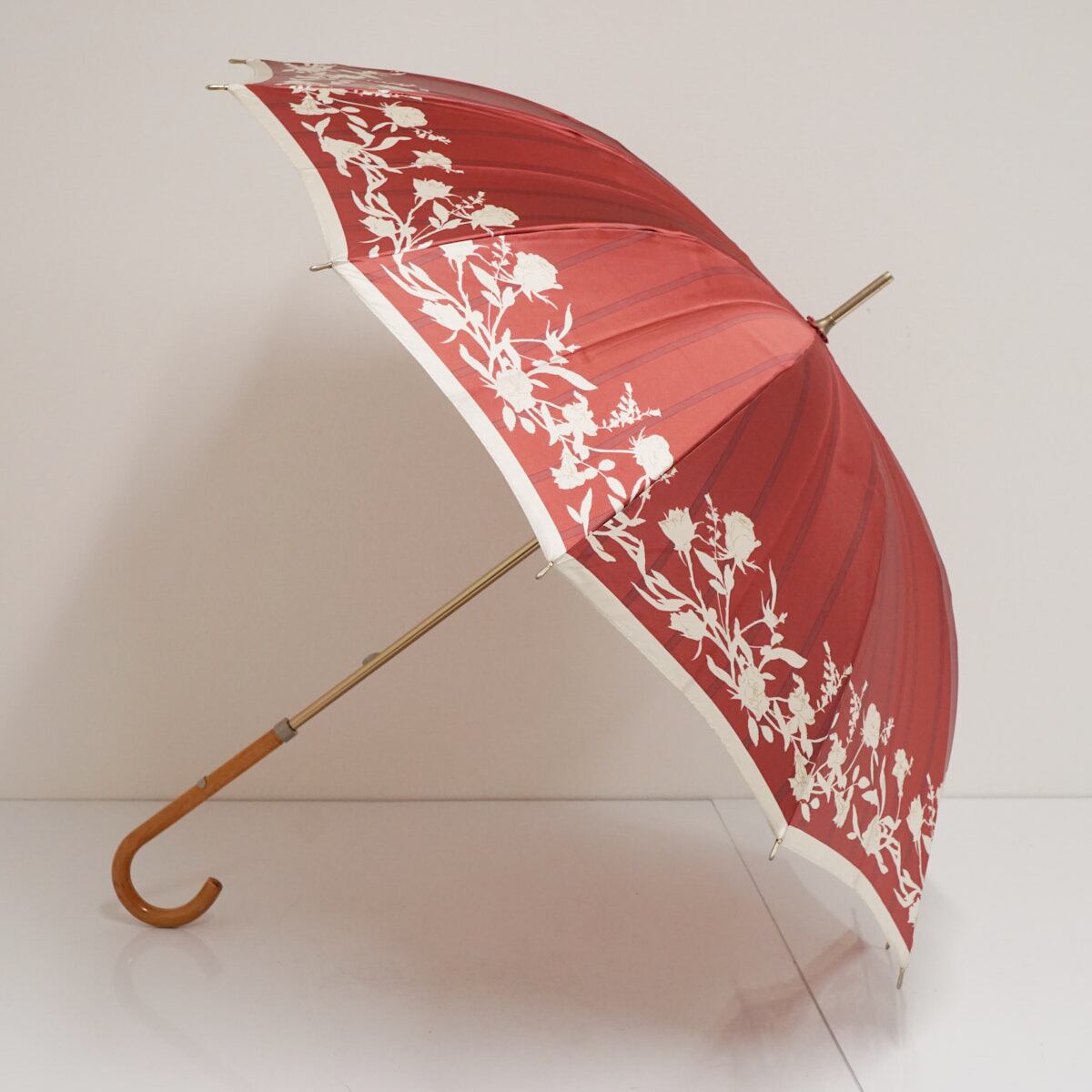 12本骨傘 DAKS ダックス USED品 レッド フラワー ロゴ 多間 ストライプ レディース 56cm A3492