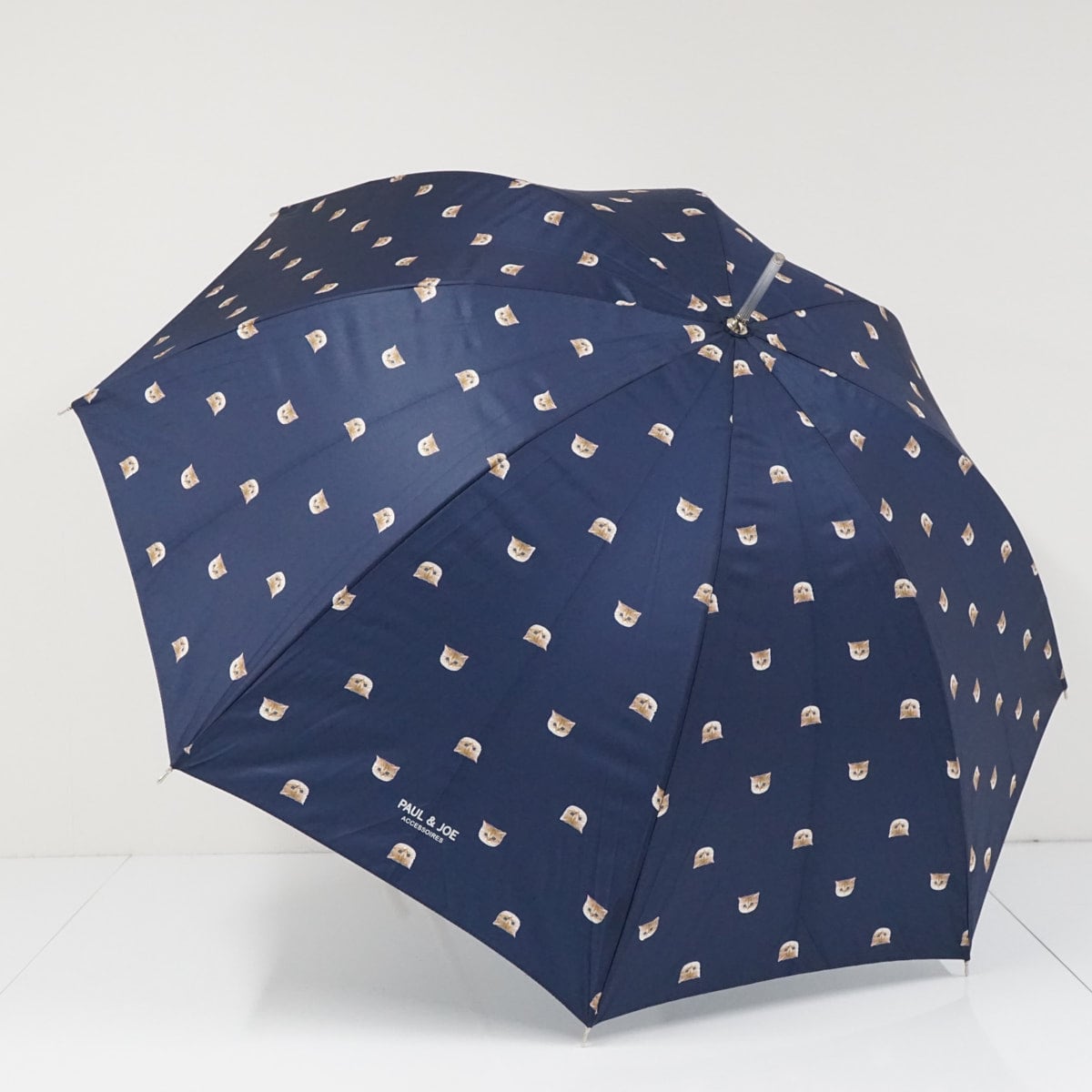 傘 PAUL&JOE ACCESSOIRES ポールアンドジョー アクセソワ USED美品 ネイビー ドット 猫 UV 60cm S3506