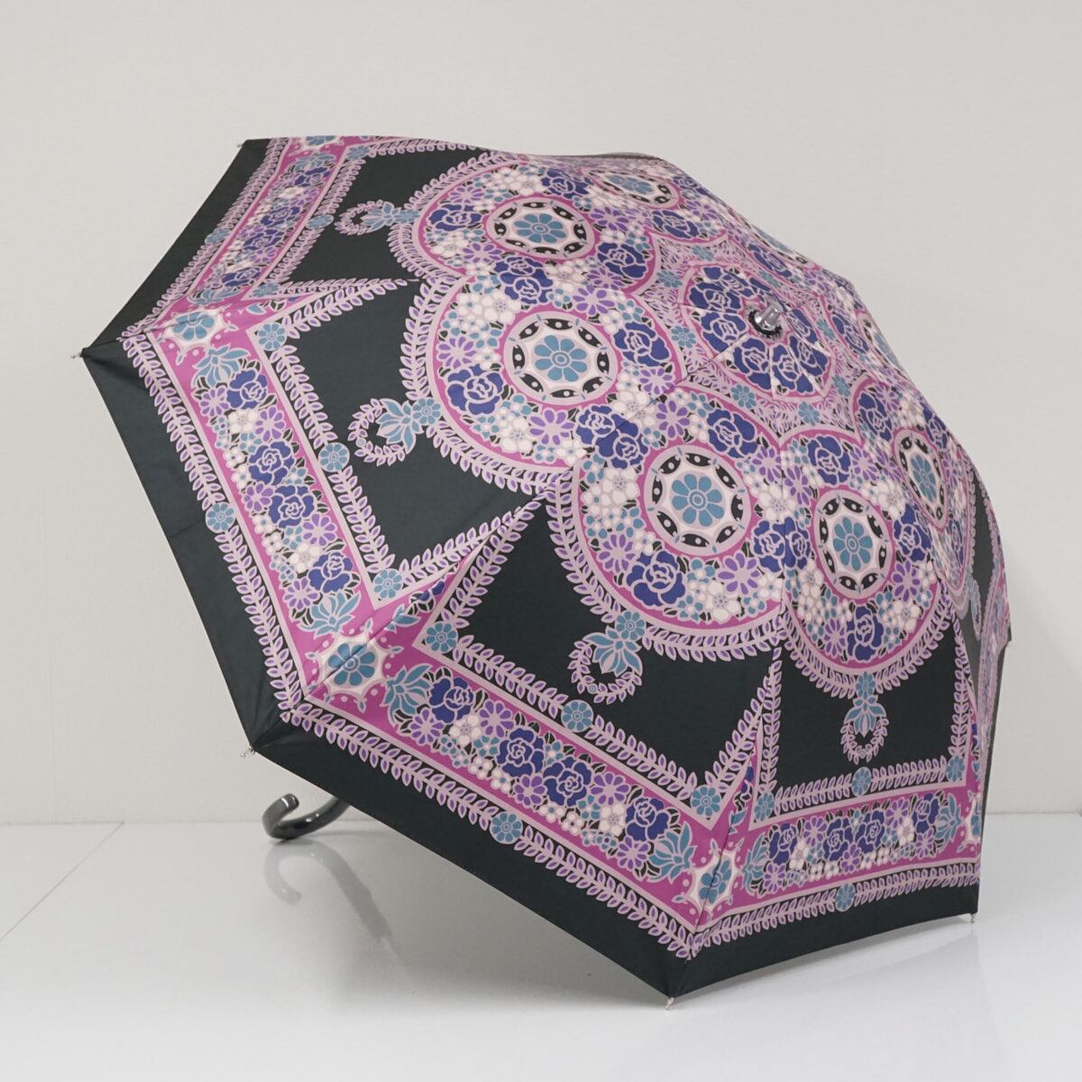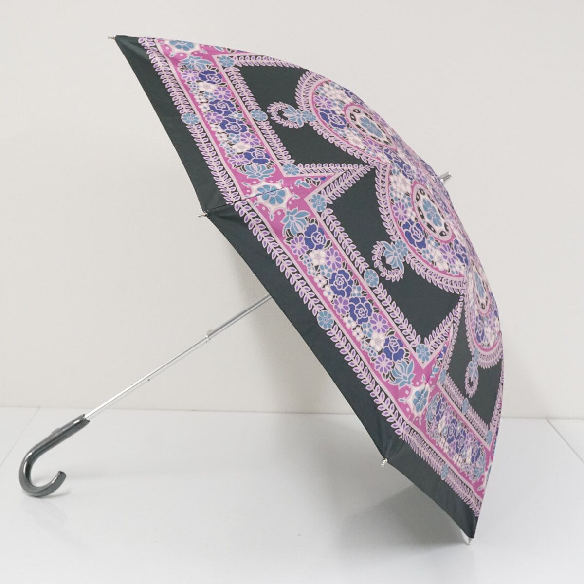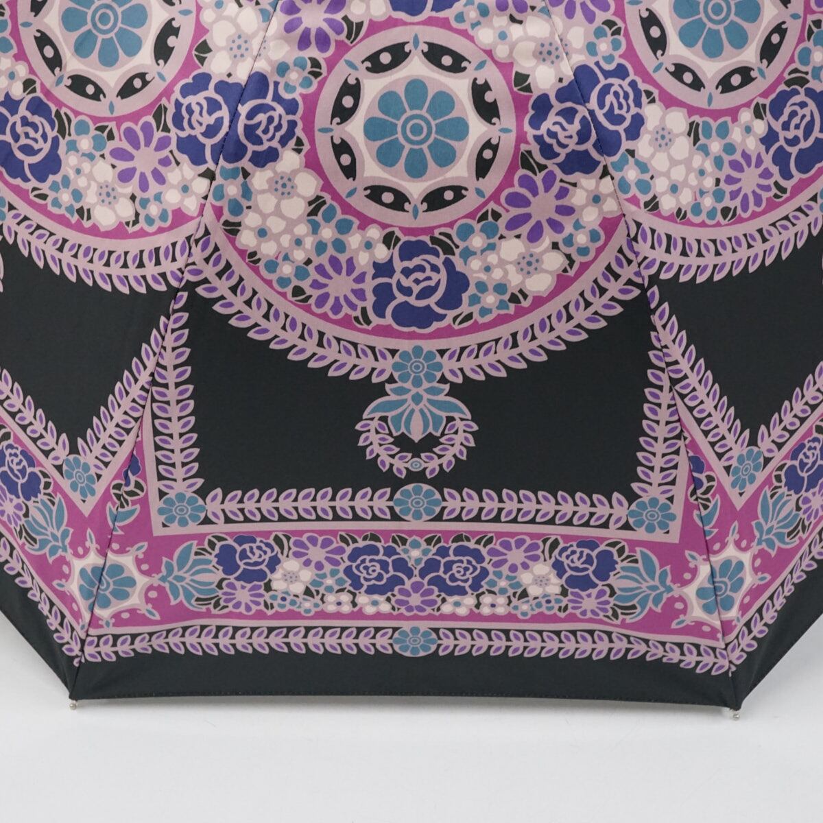 日傘 ANNA SUI アナスイ USED美品 晴雨兼用 フラワー 個性的 ブラック×パープル UV 遮光 50cm S3509