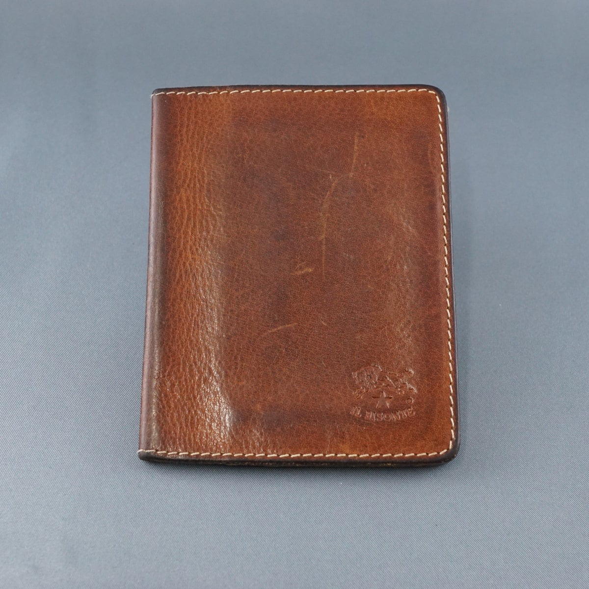 IL BISONTE イルビゾンテ 2つ折りパスケース USED品 カード入れ 定期入れ 牛革 イタリア製 ブランド セピアブラウン X9032